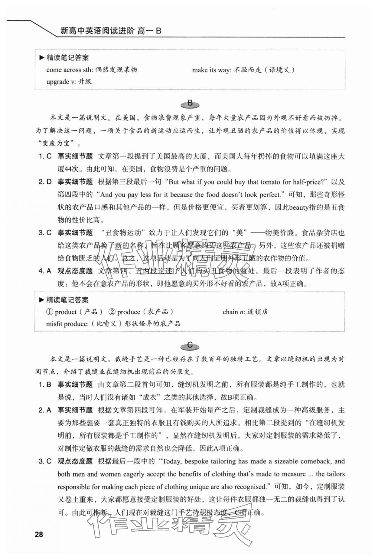 注:目前有些书本章节名称可能整理的还不是很完善,但都是按照顺序排列的,请同学们按照顺序仔细查找。练习册 2025年新高中英语阅读进阶高一B 答案主要是用来给同学们做完题方便对答案用的,请勿直接抄袭。