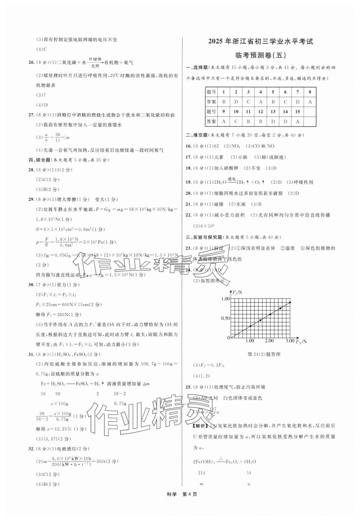 注:目前有些书本章节名称可能整理的还不是很完善,但都是按照顺序排列的,请同学们按照顺序仔细查找。练习册 2025年浙江省初三学业水平模拟训练临考预测卷科学 答案主要是用来给同学们做完题方便对答案用的,请勿直接抄袭。
