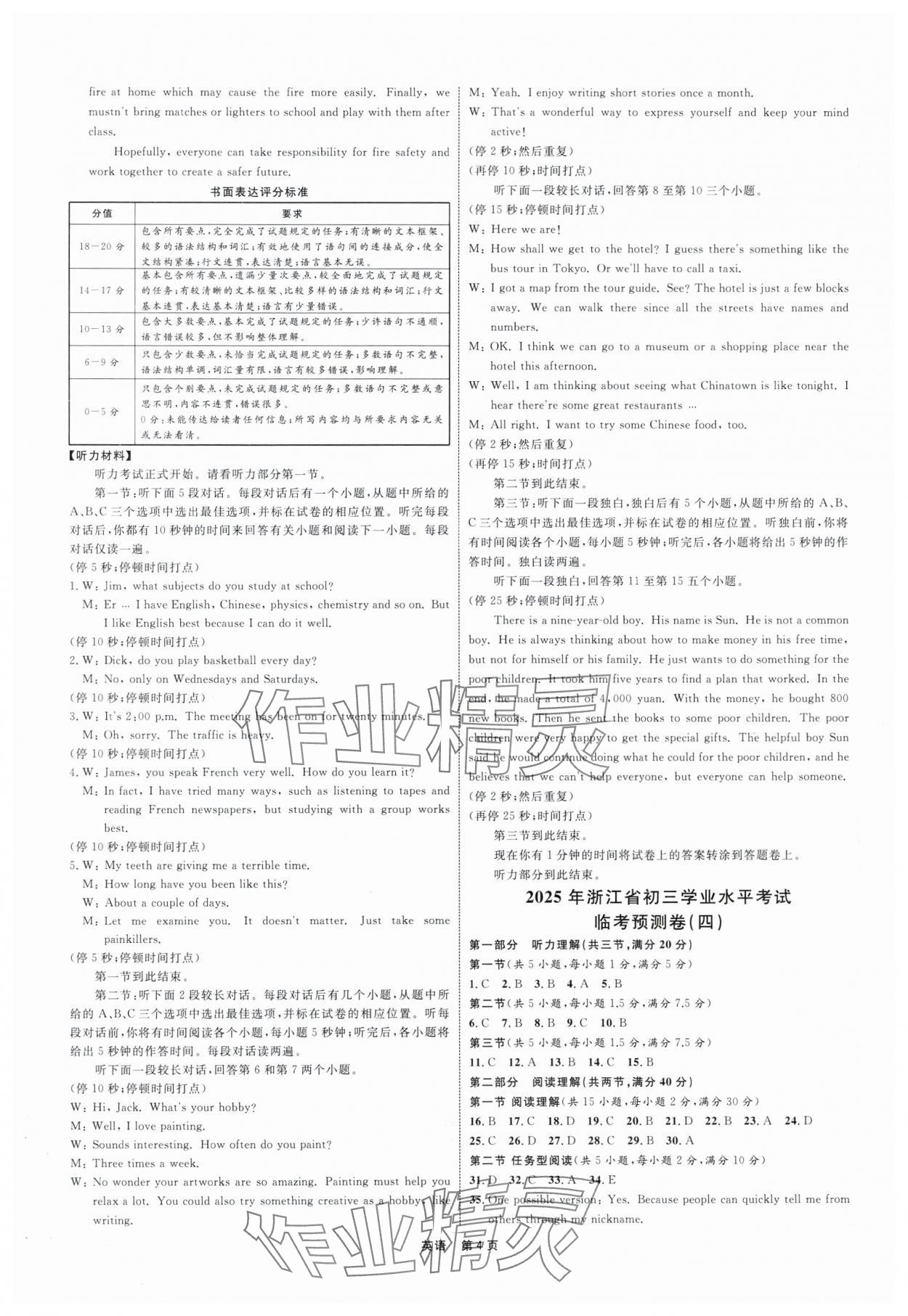 注:目前有些书本章节名称可能整理的还不是很完善,但都是按照顺序排列的,请同学们按照顺序仔细查找。练习册 2025年浙江省初三学业水平模拟训练临考预测卷英语 答案主要是用来给同学们做完题方便对答案用的,请勿直接抄袭。