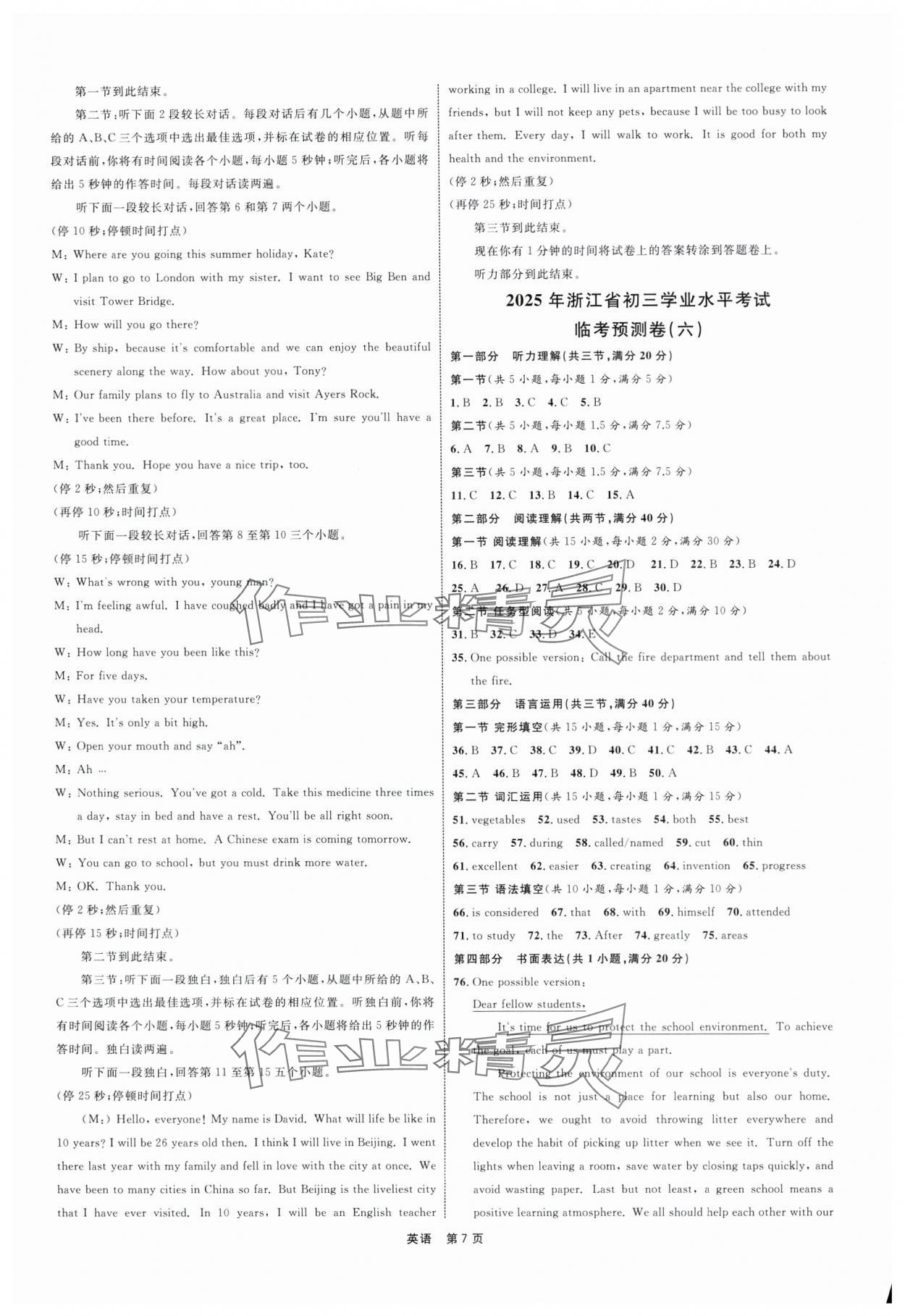 注:目前有些书本章节名称可能整理的还不是很完善,但都是按照顺序排列的,请同学们按照顺序仔细查找。练习册 2025年浙江省初三学业水平模拟训练临考预测卷英语 答案主要是用来给同学们做完题方便对答案用的,请勿直接抄袭。