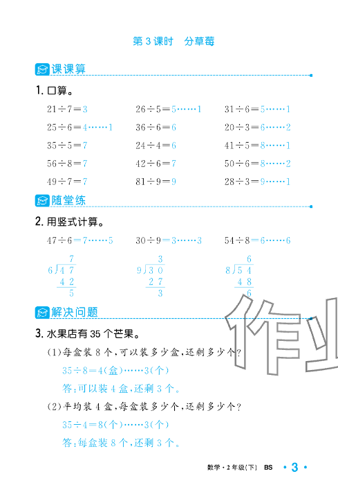 注:目前有些书本章节名称可能整理的还不是很完善,但都是按照顺序排列的,请同学们按照顺序仔细查找。练习册 2025年小学1课3练培优作业本二年级数学下册北师大版福建专版 答案主要是用来给同学们做完题方便对答案用的,请勿直接抄袭。