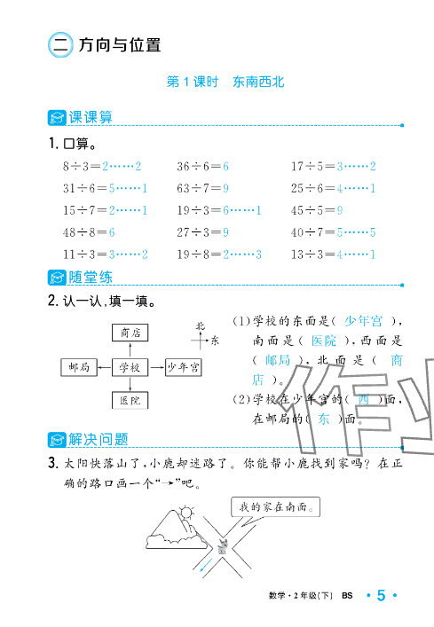 注:目前有些书本章节名称可能整理的还不是很完善,但都是按照顺序排列的,请同学们按照顺序仔细查找。练习册 2025年小学1课3练培优作业本二年级数学下册北师大版福建专版 答案主要是用来给同学们做完题方便对答案用的,请勿直接抄袭。