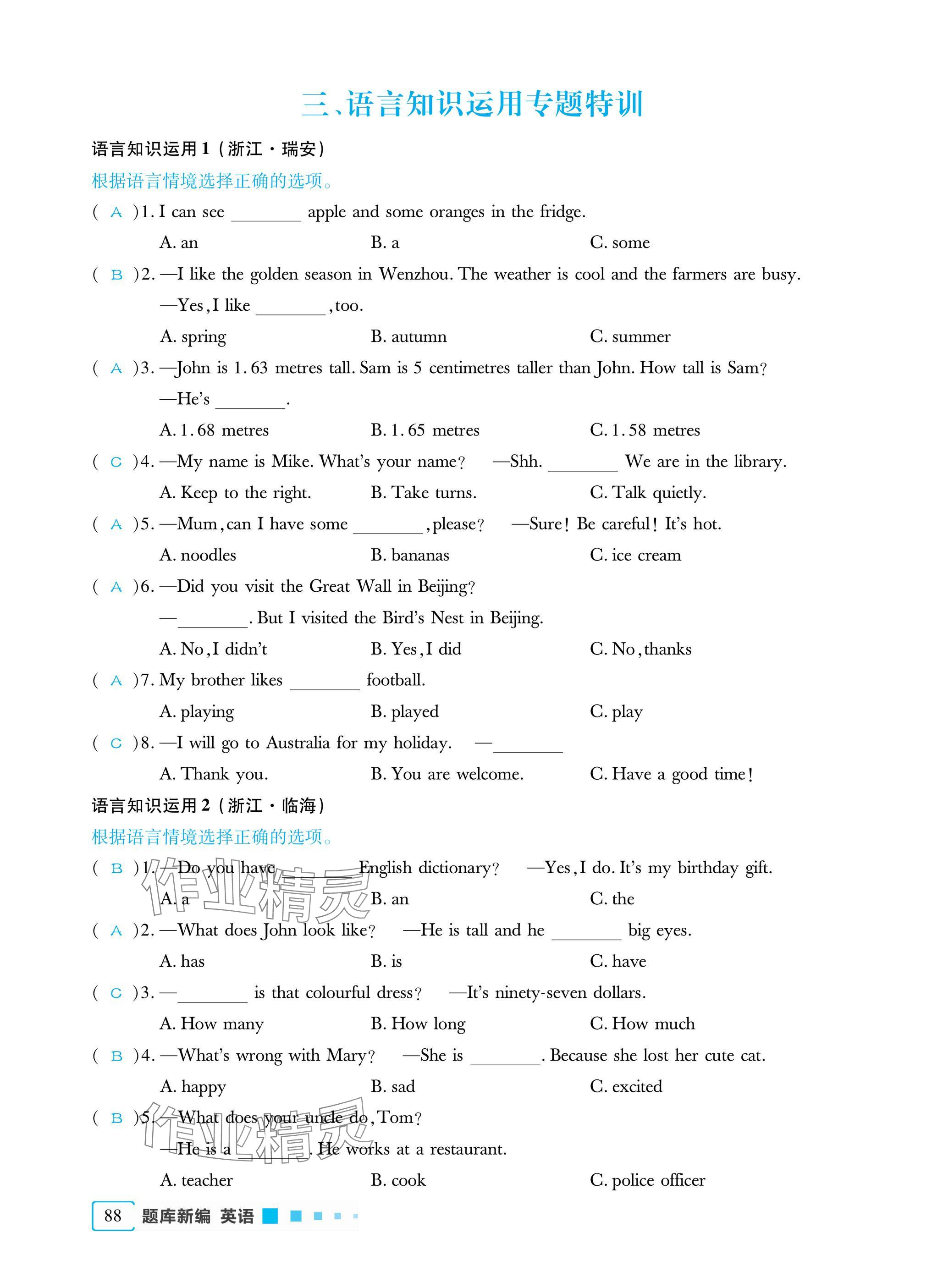 - 参考答案第88页