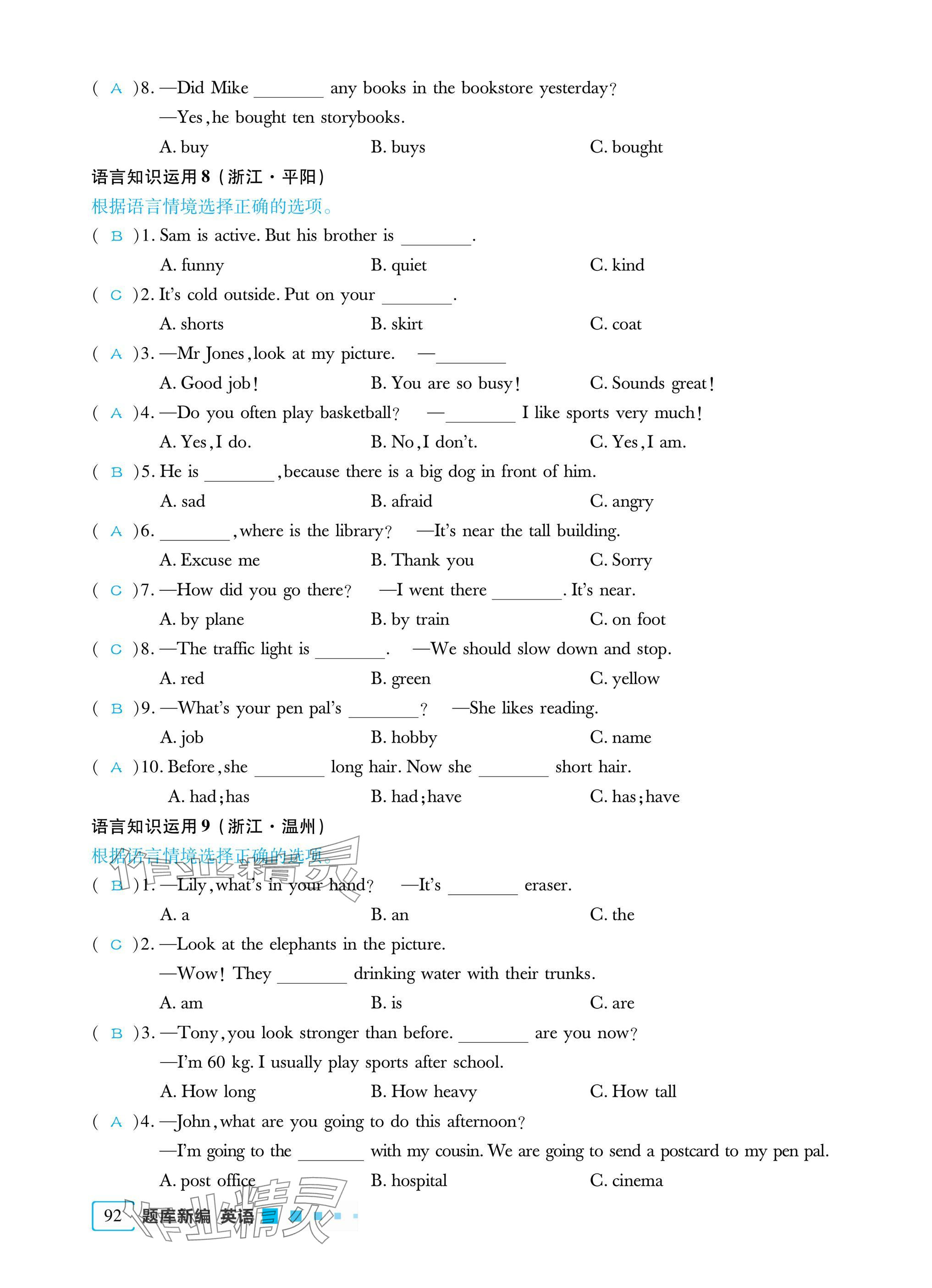 - 参考答案第92页