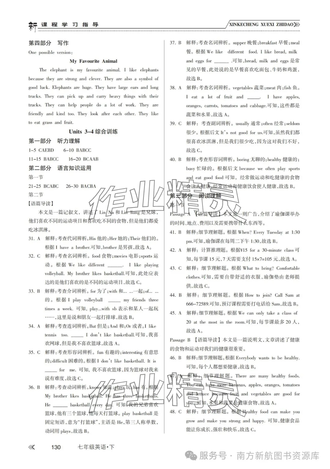 注:目前有些书本章节名称可能整理的还不是很完善,但都是按照顺序排列的,请同学们按照顺序仔细查找。练习册 2025年新课程学习指导南方出版社七年级英语下册人教版 答案主要是用来给同学们做完题方便对答案用的,请勿直接抄袭。