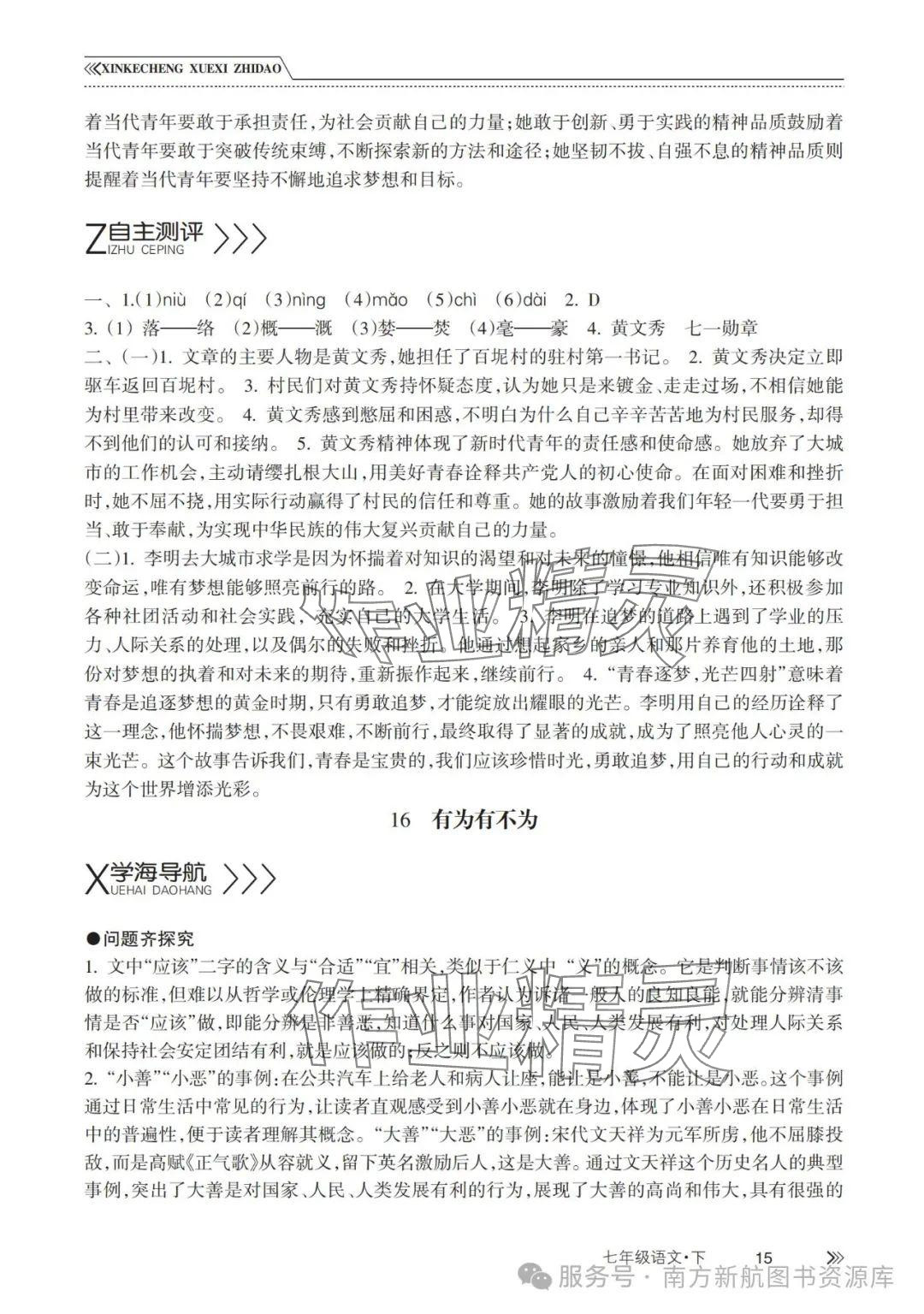 注:目前有些书本章节名称可能整理的还不是很完善,但都是按照顺序排列的,请同学们按照顺序仔细查找。练习册 2025年新课程学习指导南方出版社七年级语文下册人教版 答案主要是用来给同学们做完题方便对答案用的,请勿直接抄袭。