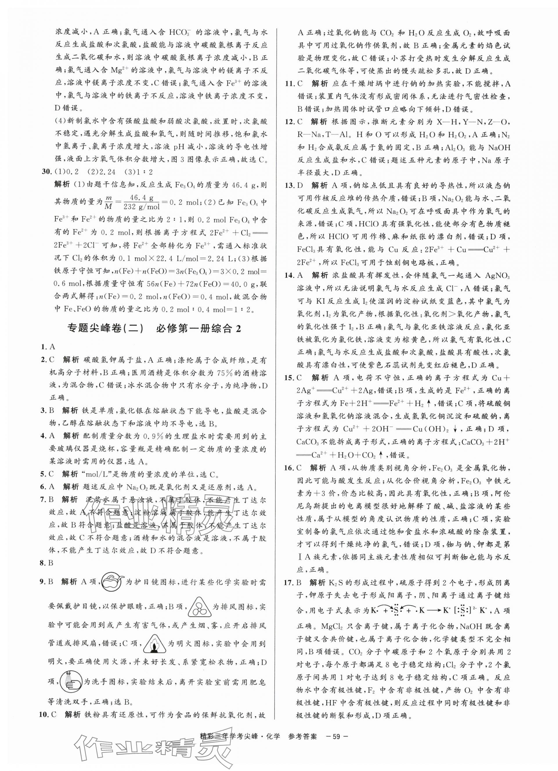 注:目前有些书本章节名称可能整理的还不是很完善,但都是按照顺序排列的,请同学们按照顺序仔细查找。练习册 2025年精彩三年学考尖峰化学浙江专版 答案主要是用来给同学们做完题方便对答案用的,请勿直接抄袭。