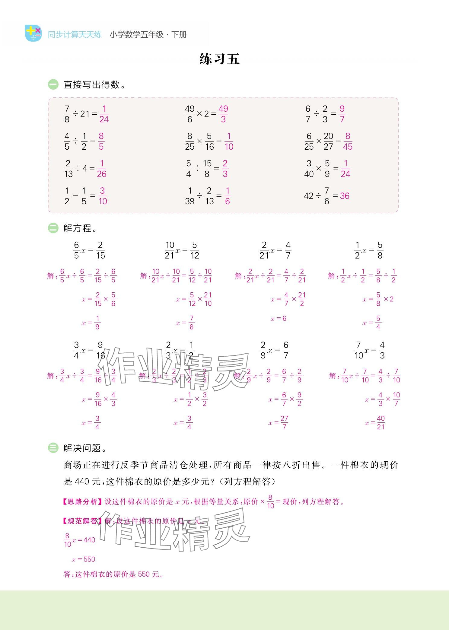注:目前有些书本章节名称可能整理的还不是很完善,但都是按照顺序排列的,请同学们按照顺序仔细查找。练习册 2025年金牛耳计算天天练五年级数学下册北师大版 答案主要是用来给同学们做完题方便对答案用的,请勿直接抄袭。
