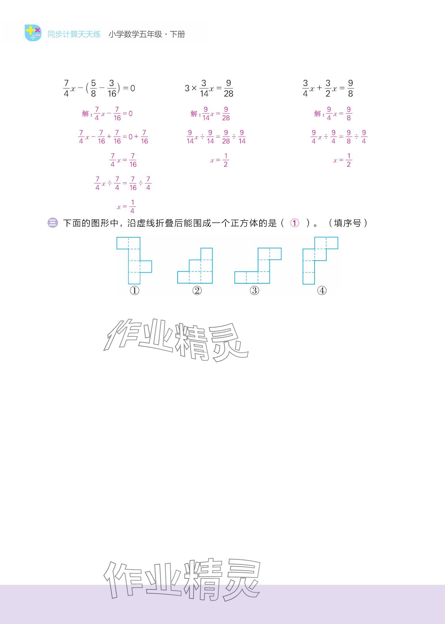 注:目前有些书本章节名称可能整理的还不是很完善,但都是按照顺序排列的,请同学们按照顺序仔细查找。练习册 2025年金牛耳计算天天练五年级数学下册北师大版 答案主要是用来给同学们做完题方便对答案用的,请勿直接抄袭。