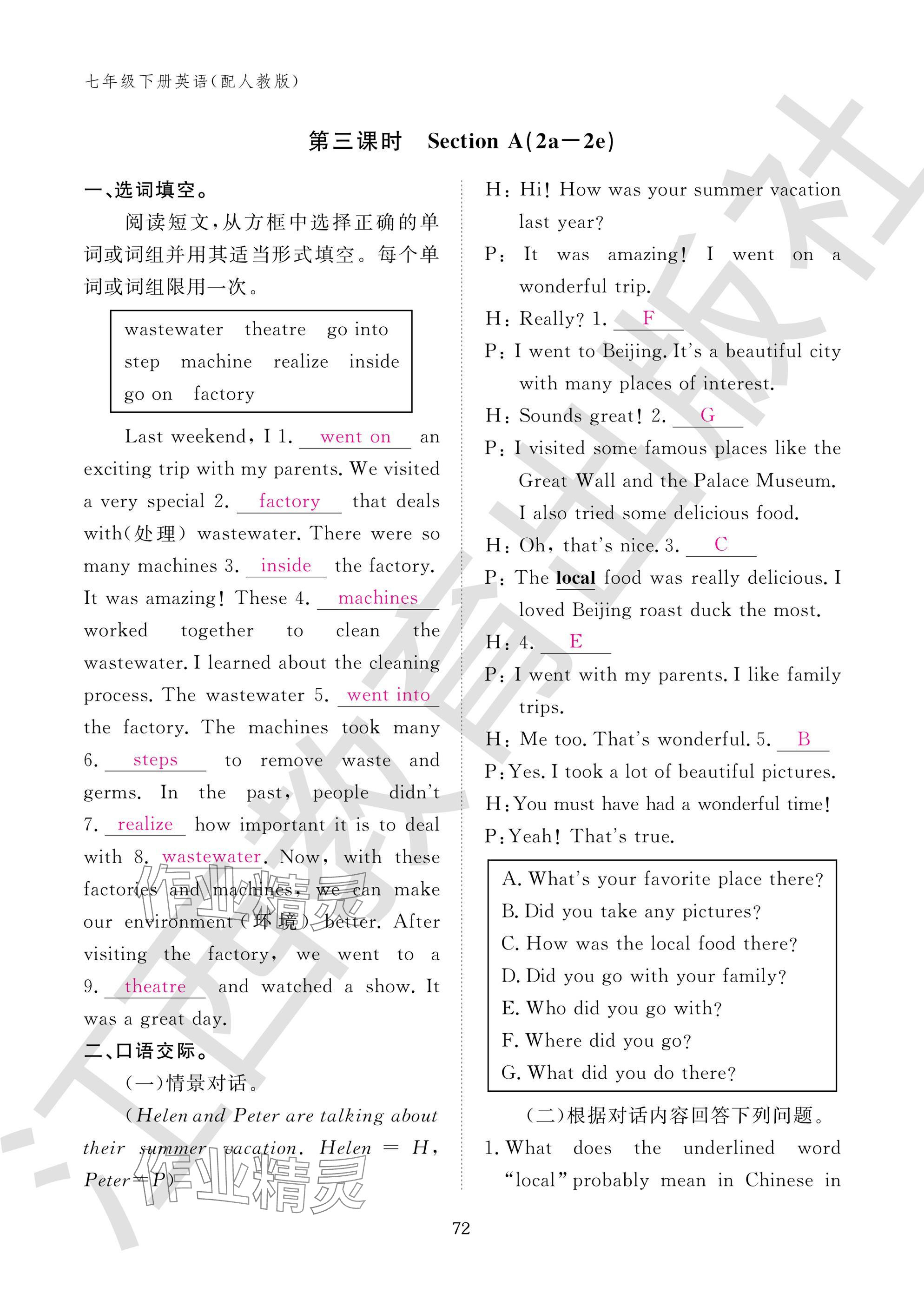 注:目前有些书本章节名称可能整理的还不是很完善,但都是按照顺序排列的,请同学们按照顺序仔细查找。练习册 2025年作业本江西教育出版社七年级英语下册人教版 答案主要是用来给同学们做完题方便对答案用的,请勿直接抄袭。
