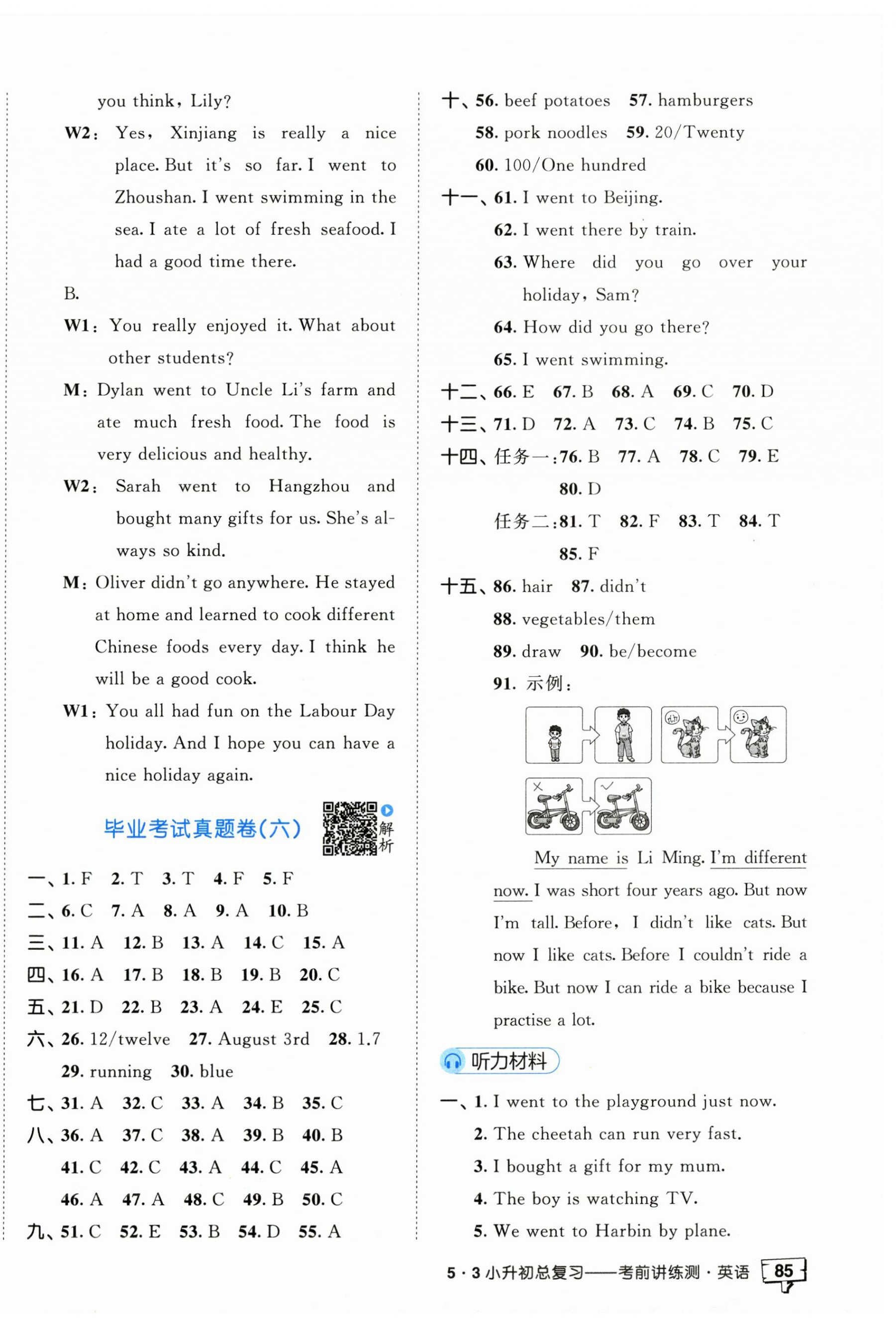 注:目前有些书本章节名称可能整理的还不是很完善,但都是按照顺序排列的,请同学们按照顺序仔细查找。练习册 2025年53小升初总复习考前讲练测英语人教版 答案主要是用来给同学们做完题方便对答案用的,请勿直接抄袭。