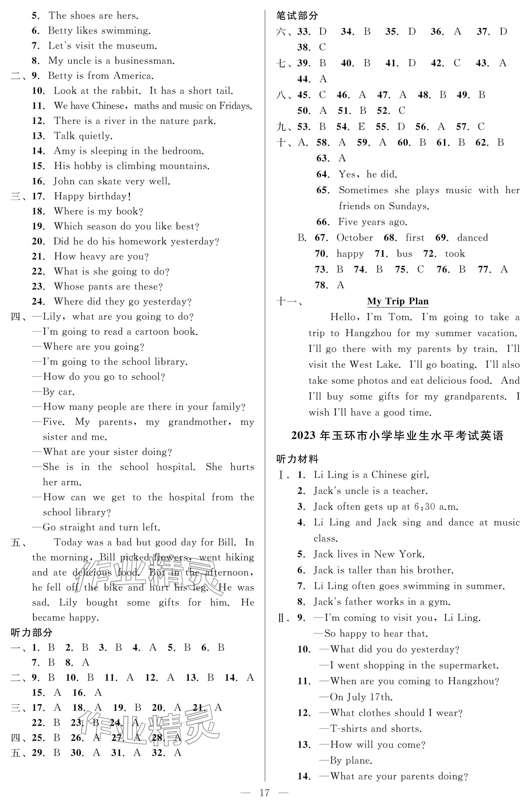 注:目前有些书本章节名称可能整理的还不是很完善,但都是按照顺序排列的,请同学们按照顺序仔细查找。练习册 2025年小学毕业特训卷英语台州专版 答案主要是用来给同学们做完题方便对答案用的,请勿直接抄袭。
