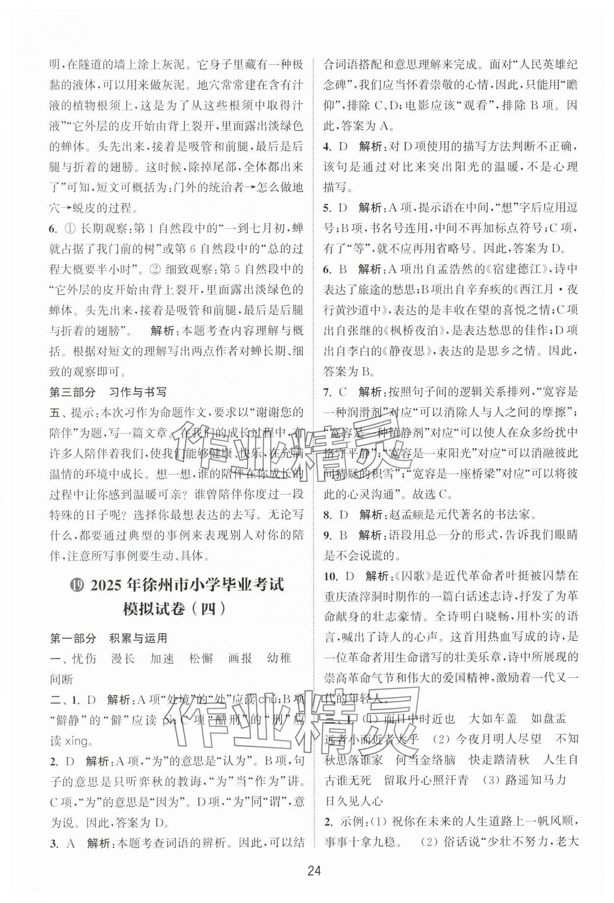注:目前有些书本章节名称可能整理的还不是很完善,但都是按照顺序排列的,请同学们按照顺序仔细查找。练习册 2025年小学毕业考试试卷精编语文徐州专版 答案主要是用来给同学们做完题方便对答案用的,请勿直接抄袭。