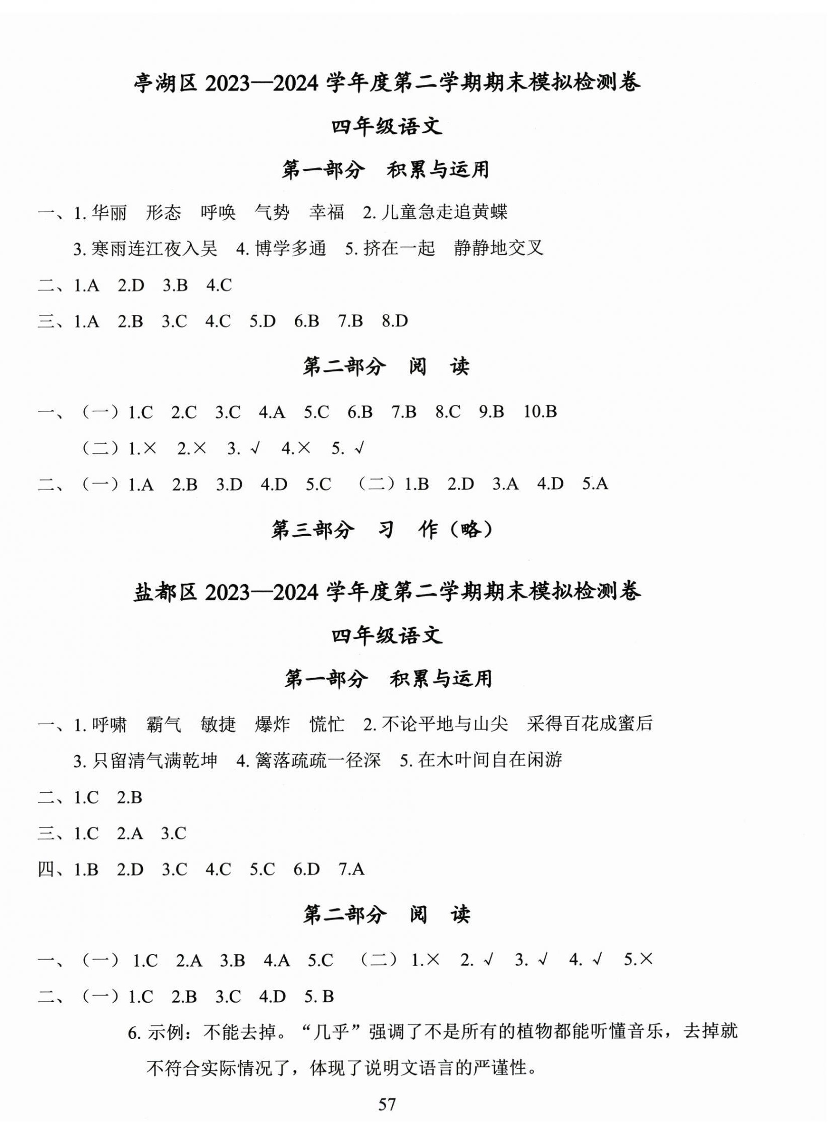 注:目前有些书本章节名称可能整理的还不是很完善,但都是按照顺序排列的,请同学们按照顺序仔细查找。练习册 2025年盐城市小学期末试卷精编四年级语文下册人教版 答案主要是用来给同学们做完题方便对答案用的,请勿直接抄袭。