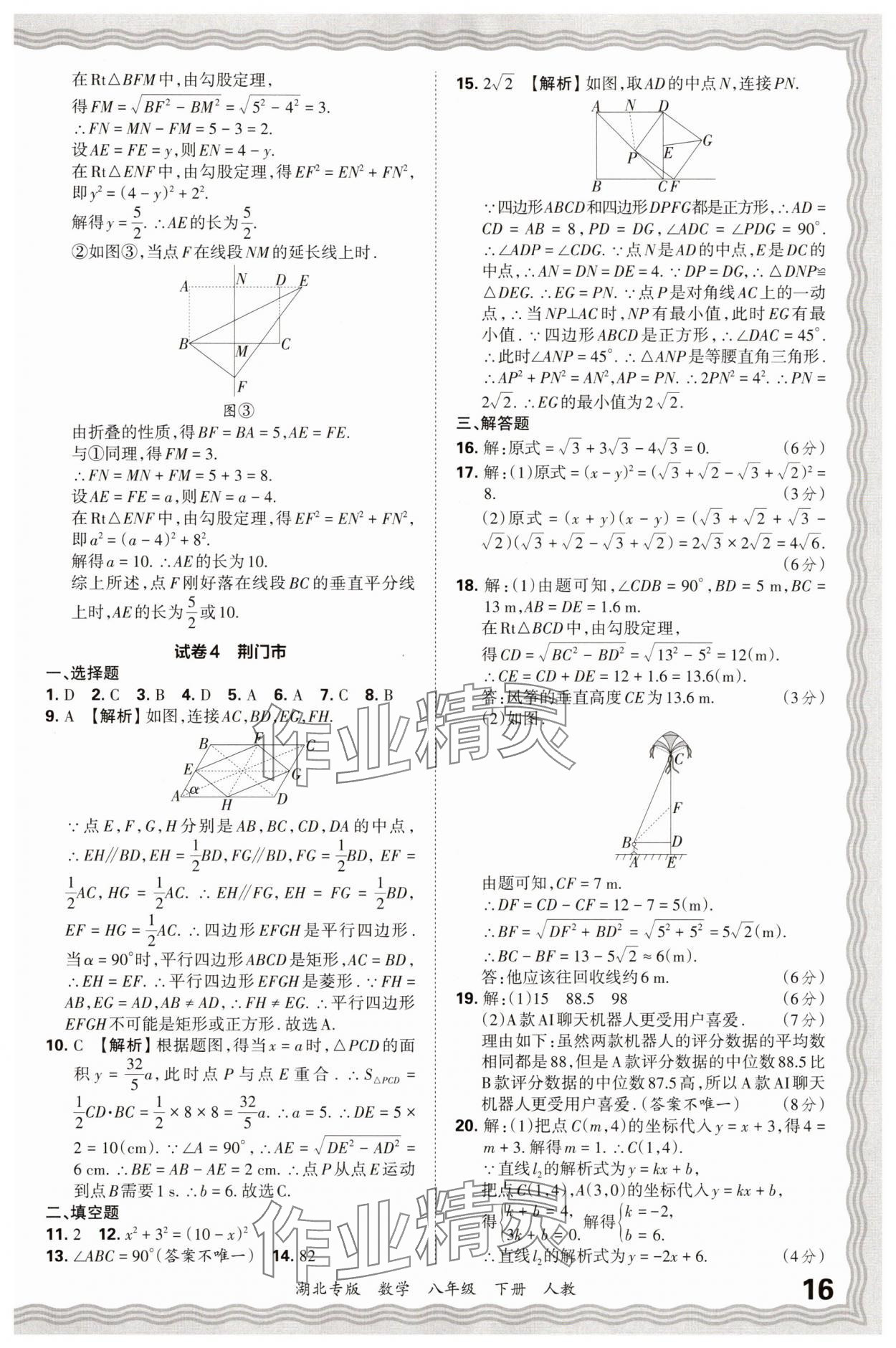 2025年王朝霞各地期末试卷精选八年级数学下册人教版湖北专版