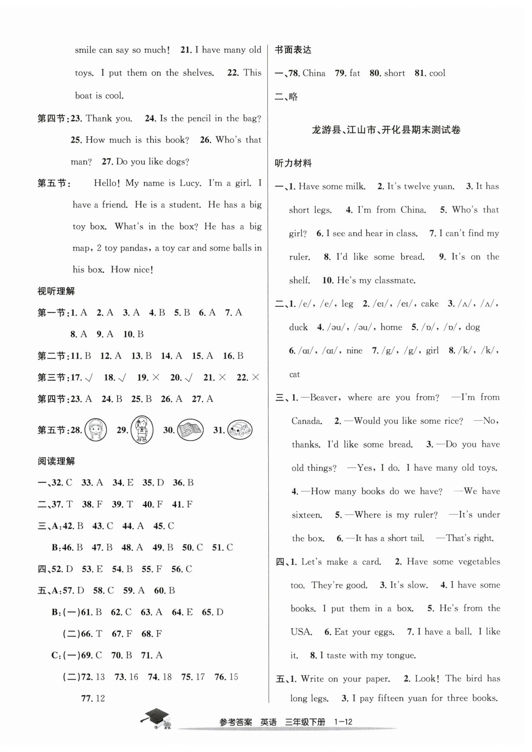 注:目前有些书本章节名称可能整理的还不是很完善,但都是按照顺序排列的,请同学们按照顺序仔细查找。练习册 2025年期末直通车三年级英语下册人教版 答案主要是用来给同学们做完题方便对答案用的,请勿直接抄袭。