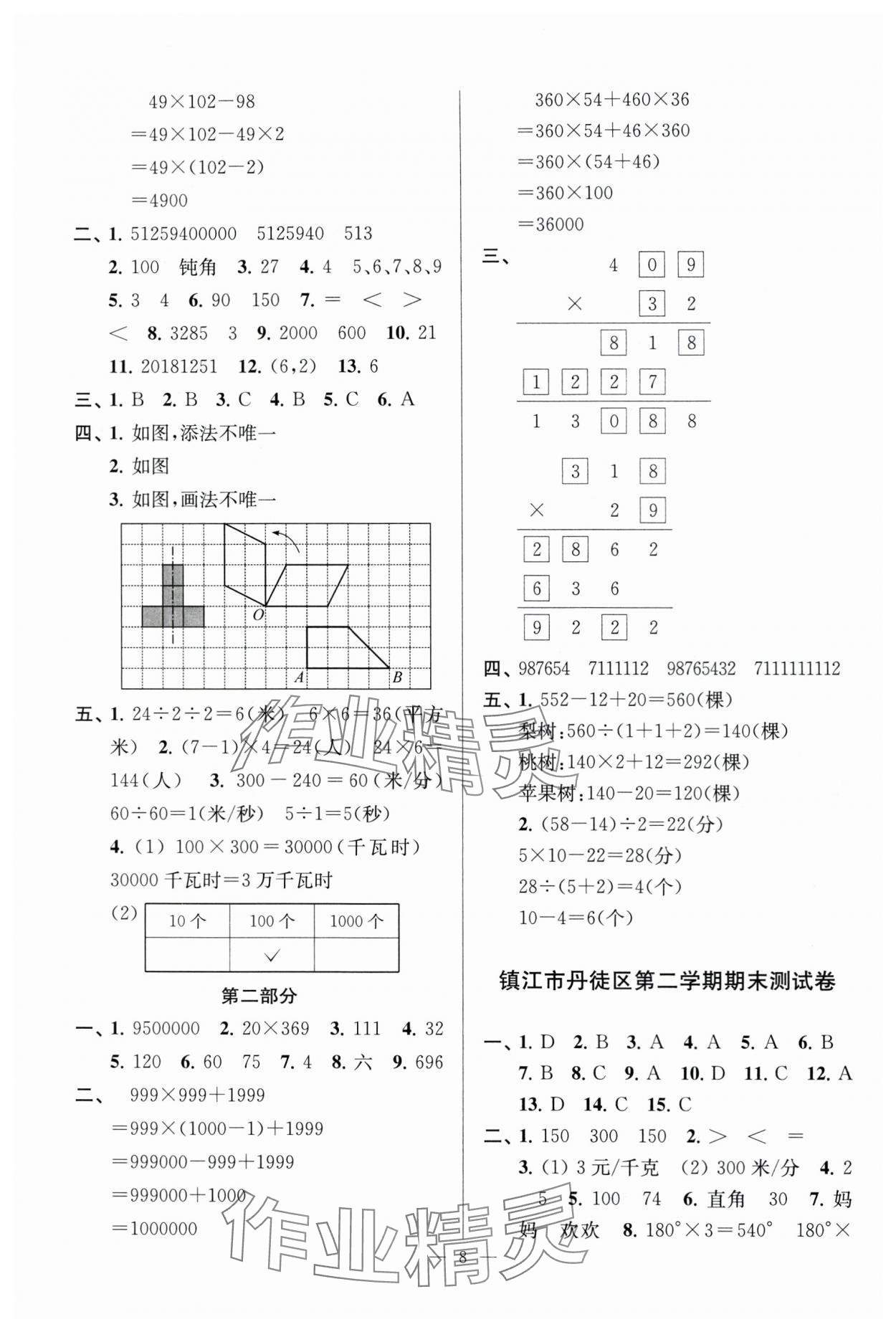 2025年超能学典各地期末试卷精选四年级数学下册苏教版