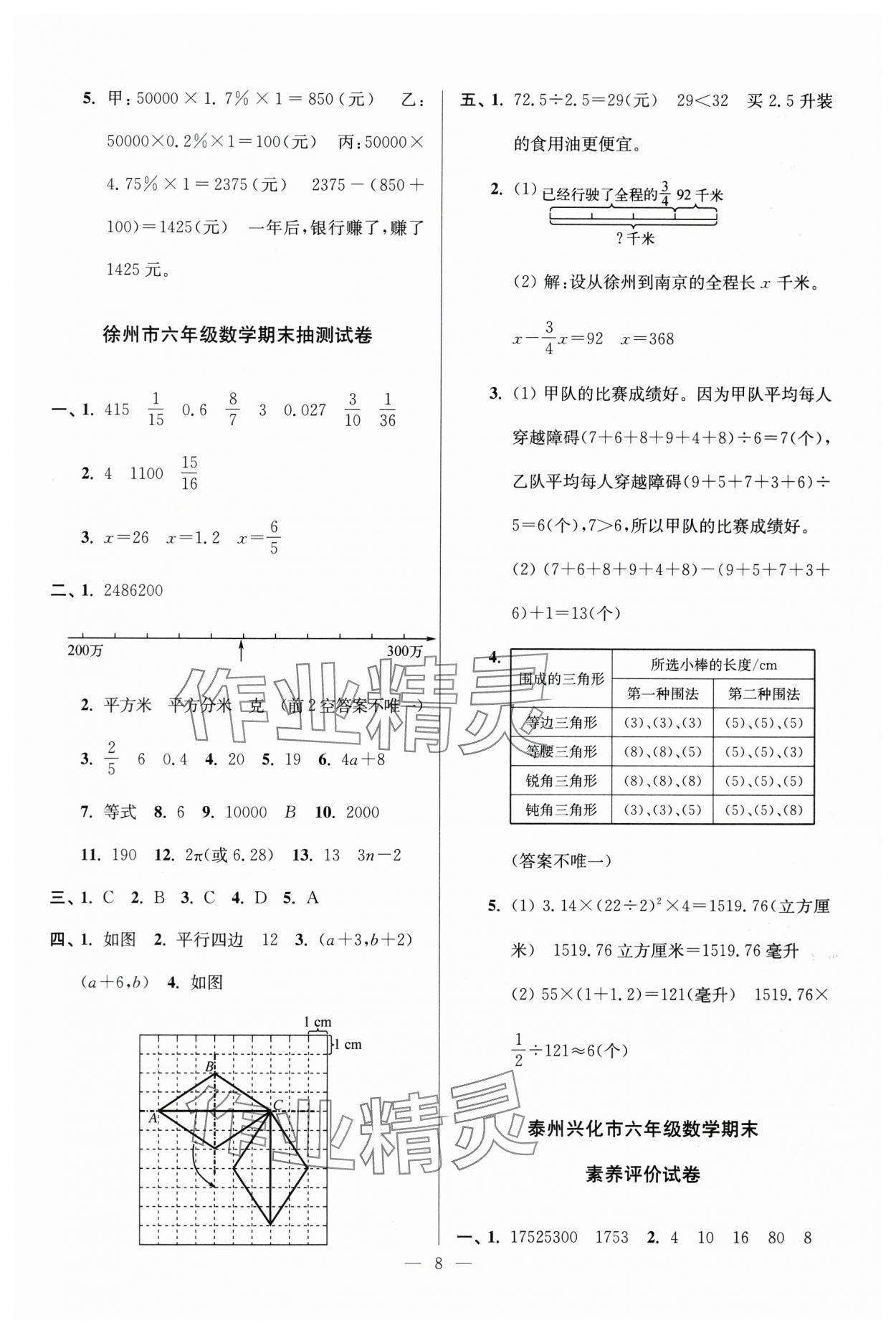 注:目前有些书本章节名称可能整理的还不是很完善,但都是按照顺序排列的,请同学们按照顺序仔细查找。练习册 2025年超能学典各地期末试卷精选六年级数学下册苏教版 答案主要是用来给同学们做完题方便对答案用的,请勿直接抄袭。