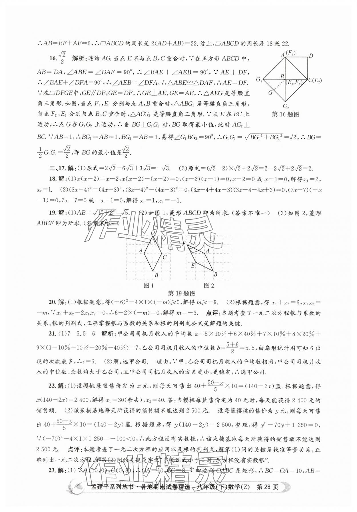 注:目前有些书本章节名称可能整理的还不是很完善,但都是按照顺序排列的,请同学们按照顺序仔细查找。练习册 2025年孟建平各地期末试卷精选八年级数学下册浙教版 答案主要是用来给同学们做完题方便对答案用的,请勿直接抄袭。