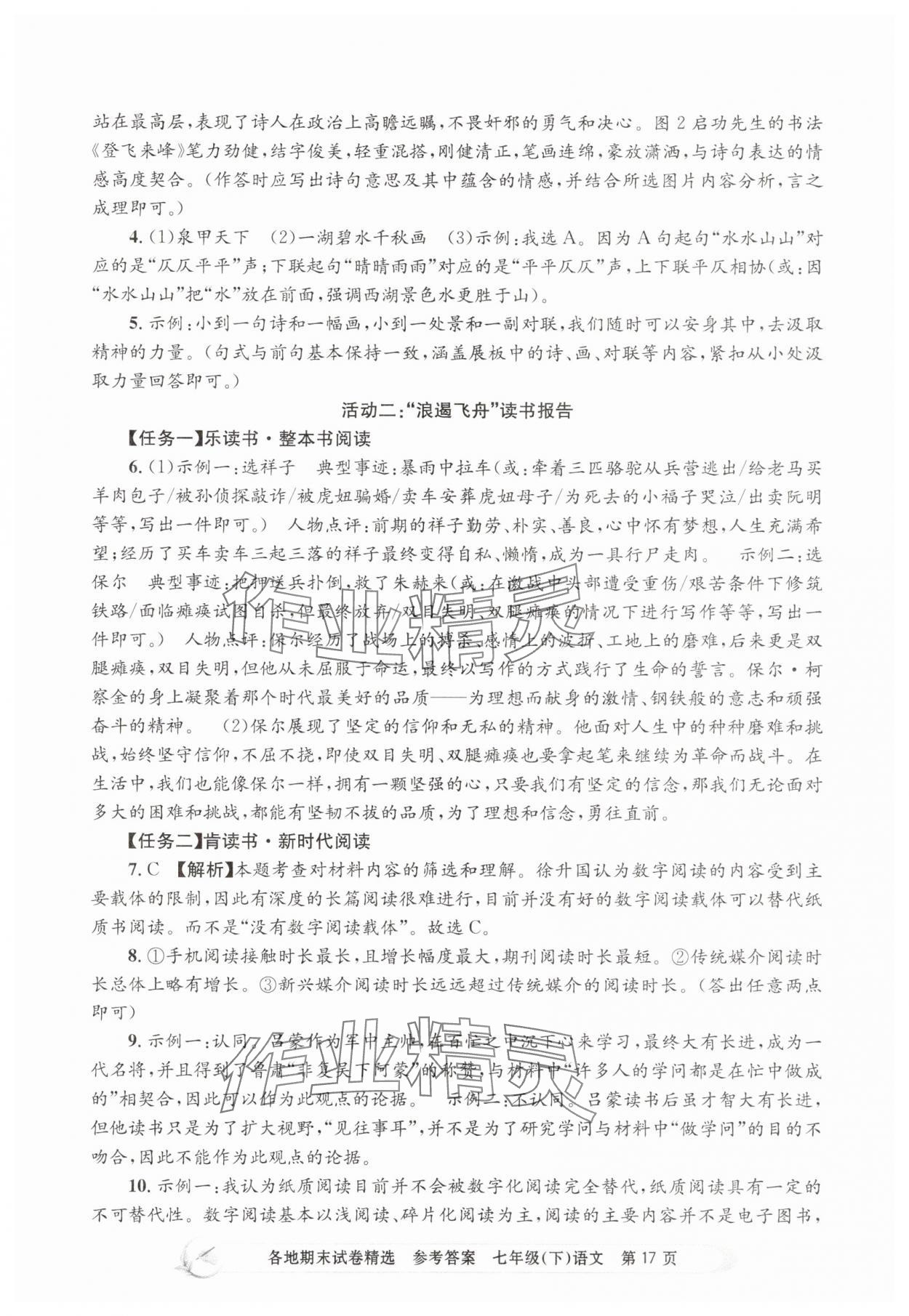 注:目前有些书本章节名称可能整理的还不是很完善,但都是按照顺序排列的,请同学们按照顺序仔细查找。练习册 2025年孟建平各地期末试卷精选七年级语文下册人教版 答案主要是用来给同学们做完题方便对答案用的,请勿直接抄袭。
