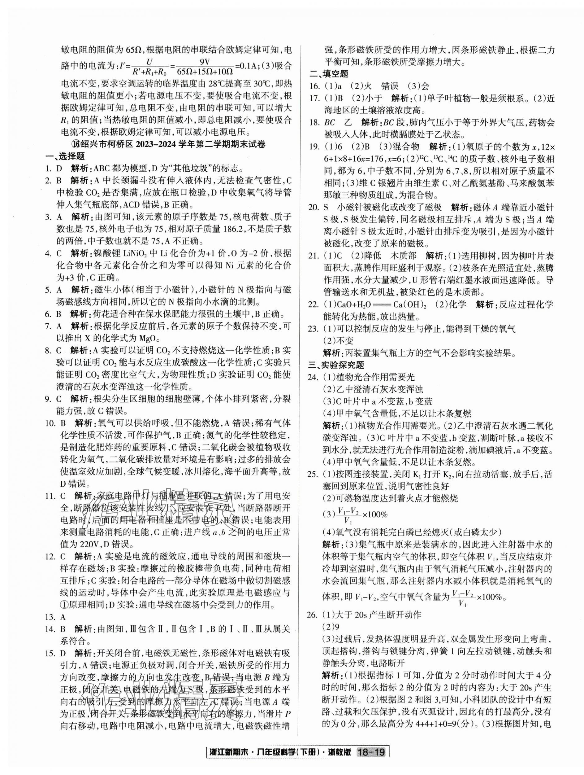 注:目前有些书本章节名称可能整理的还不是很完善,但都是按照顺序排列的,请同学们按照顺序仔细查找。练习册 2025年励耘书业浙江新期末八年级科学下册浙教版 答案主要是用来给同学们做完题方便对答案用的,请勿直接抄袭。