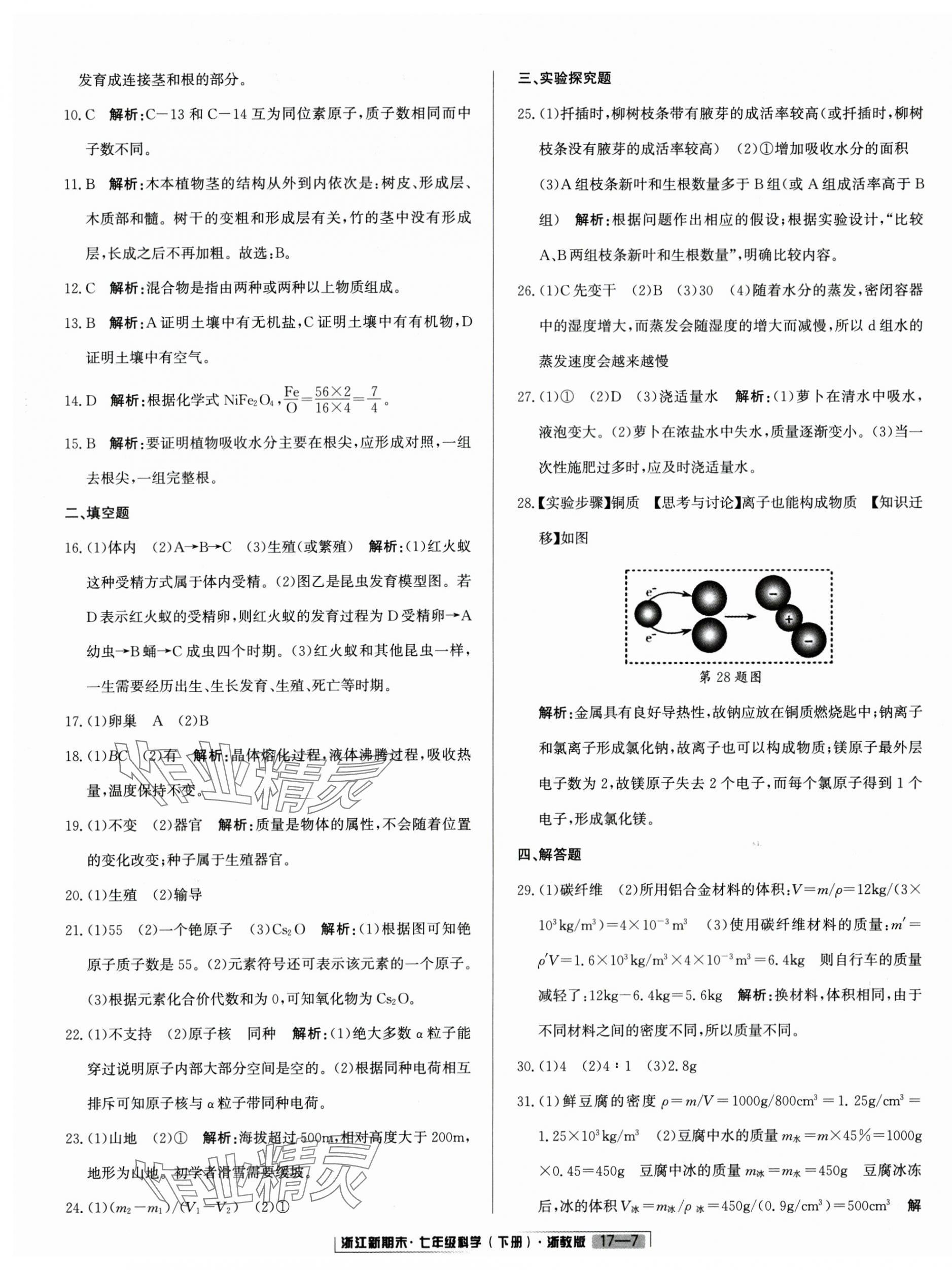注:目前有些书本章节名称可能整理的还不是很完善,但都是按照顺序排列的,请同学们按照顺序仔细查找。练习册 2025年励耘书业浙江新期末七年级科学下册浙教版 答案主要是用来给同学们做完题方便对答案用的,请勿直接抄袭。