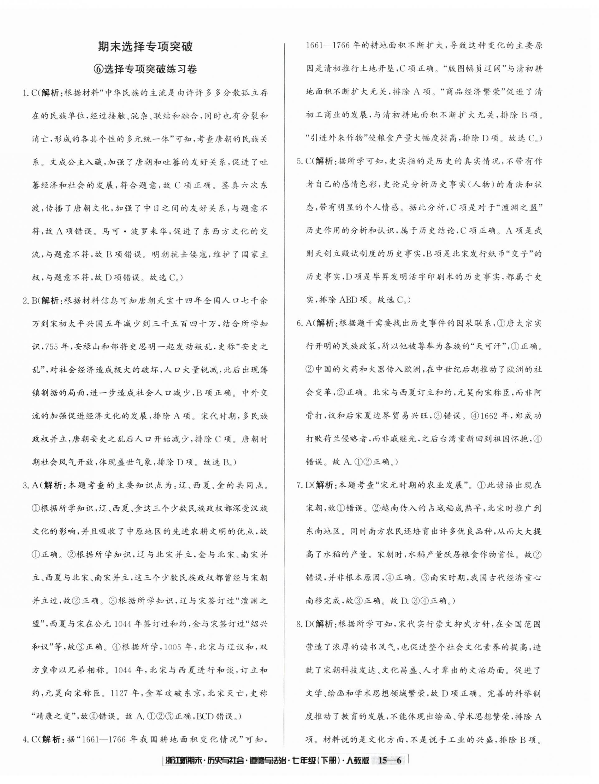 2025年励耘书业浙江新期末七年级历史与社会道德与法治下册人教版