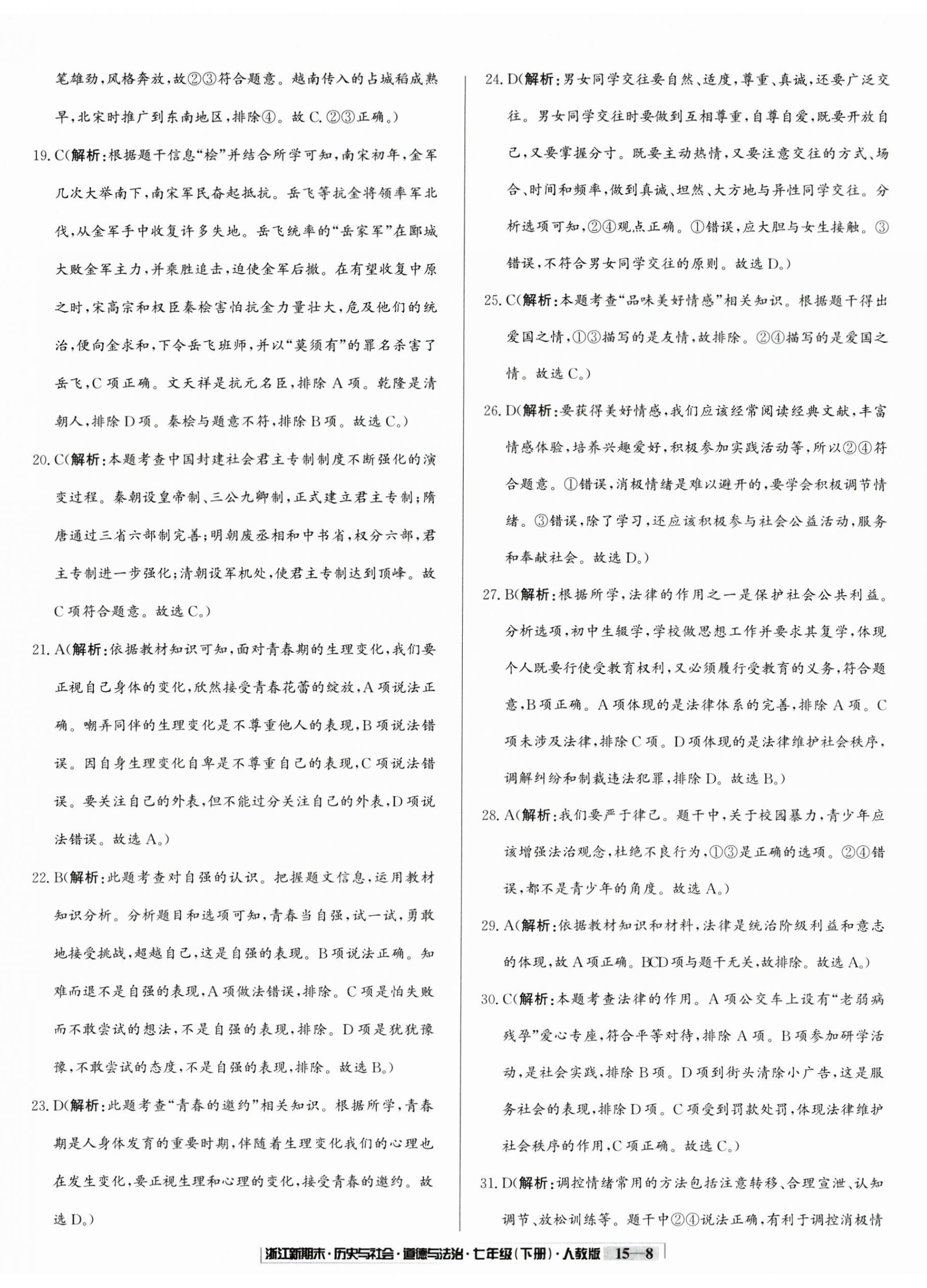 2025年励耘书业浙江新期末七年级历史与社会道德与法治下册人教版