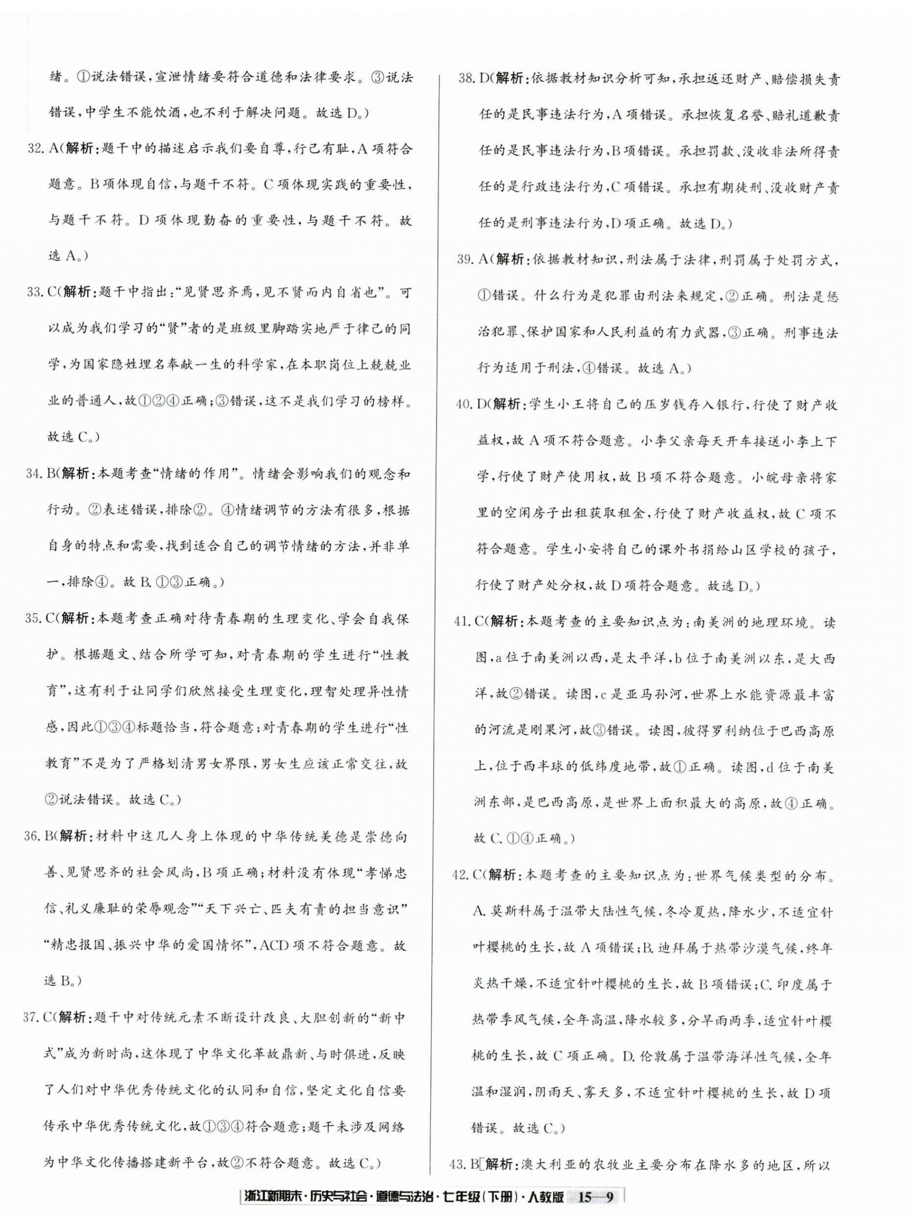 注:目前有些书本章节名称可能整理的还不是很完善,但都是按照顺序排列的,请同学们按照顺序仔细查找。练习册 2025年励耘书业浙江新期末七年级历史与社会道德与法治下册人教版 答案主要是用来给同学们做完题方便对答案用的,请勿直接抄袭。