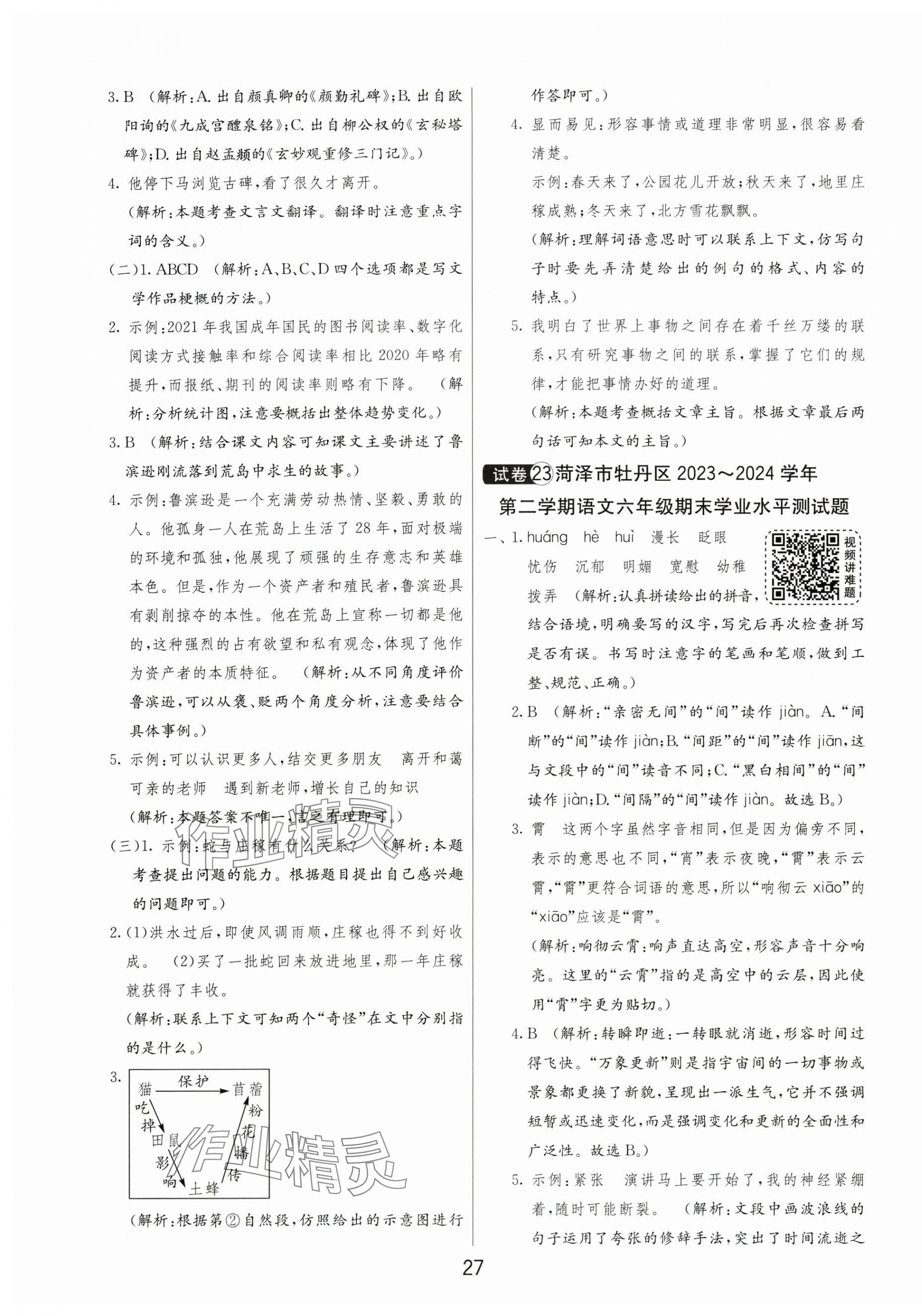 注:目前有些书本章节名称可能整理的还不是很完善,但都是按照顺序排列的,请同学们按照顺序仔细查找。练习册 2025年小学毕业升学考试试卷精选六年级语文人教版山东专版 答案主要是用来给同学们做完题方便对答案用的,请勿直接抄袭。