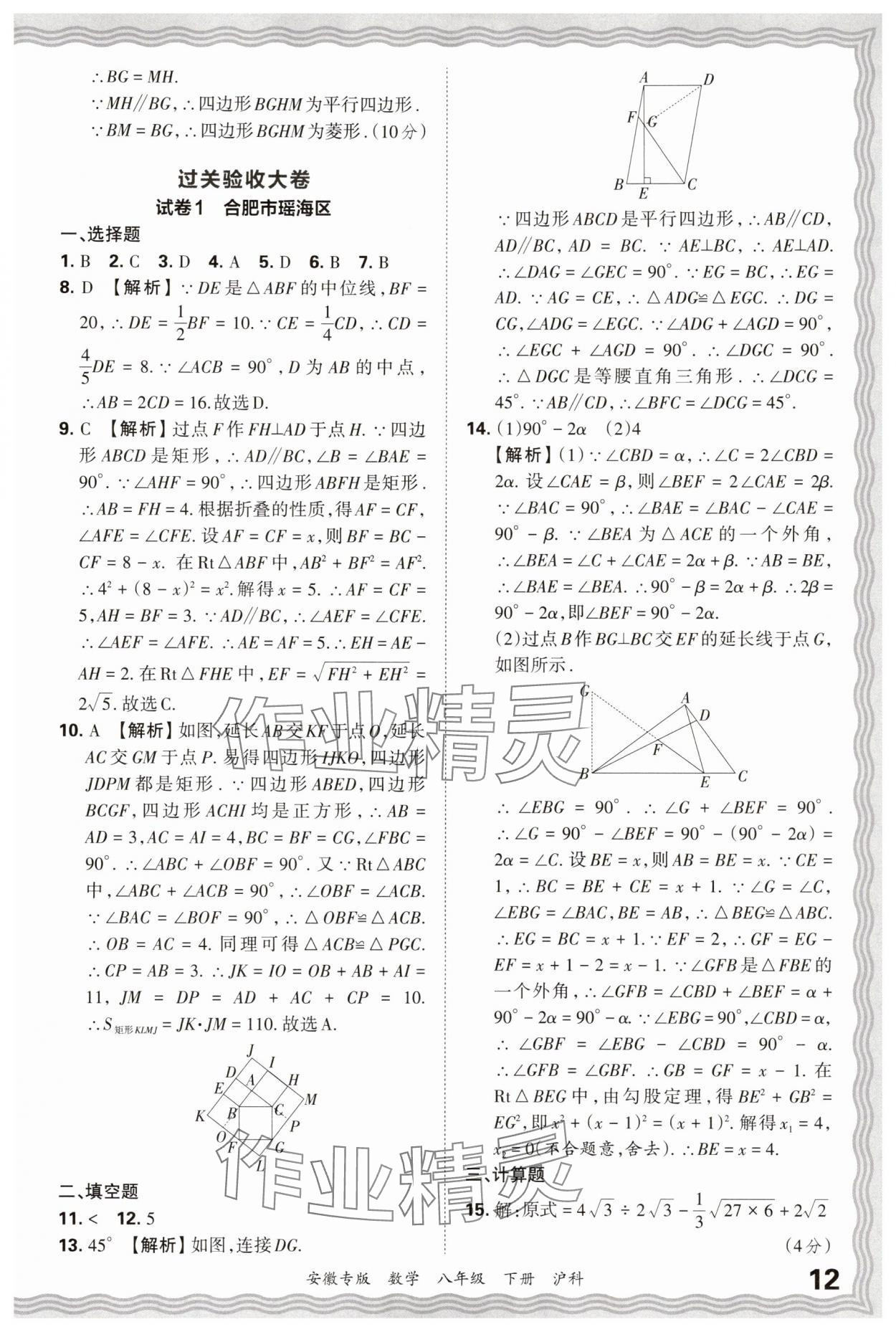 2025年王朝霞各地期末试卷精选八年级数学下册沪科版安徽专版