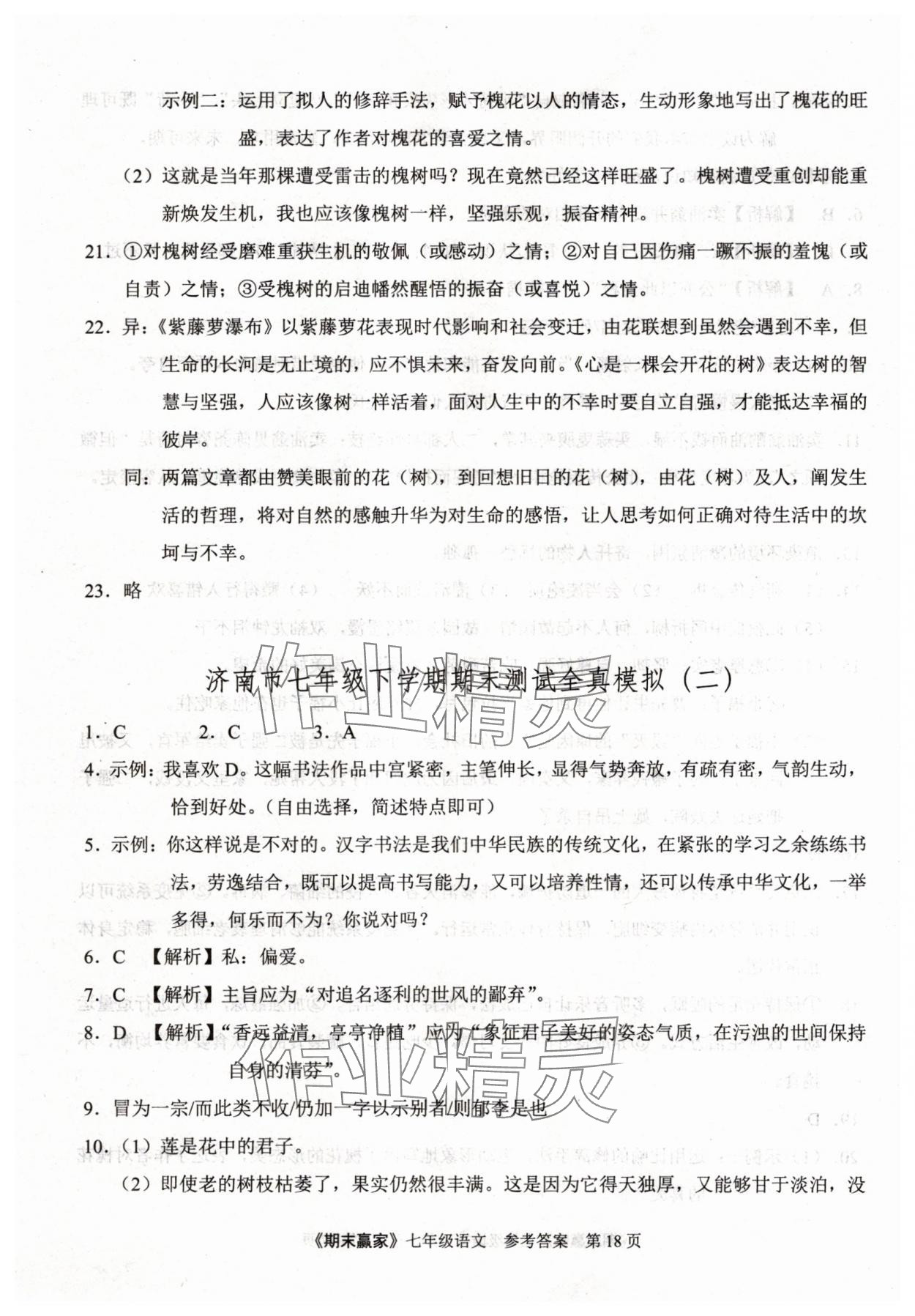 注:目前有些书本章节名称可能整理的还不是很完善,但都是按照顺序排列的,请同学们按照顺序仔细查找。练习册 2025年期末赢家七年级语文下册人教版济南专版 答案主要是用来给同学们做完题方便对答案用的,请勿直接抄袭。