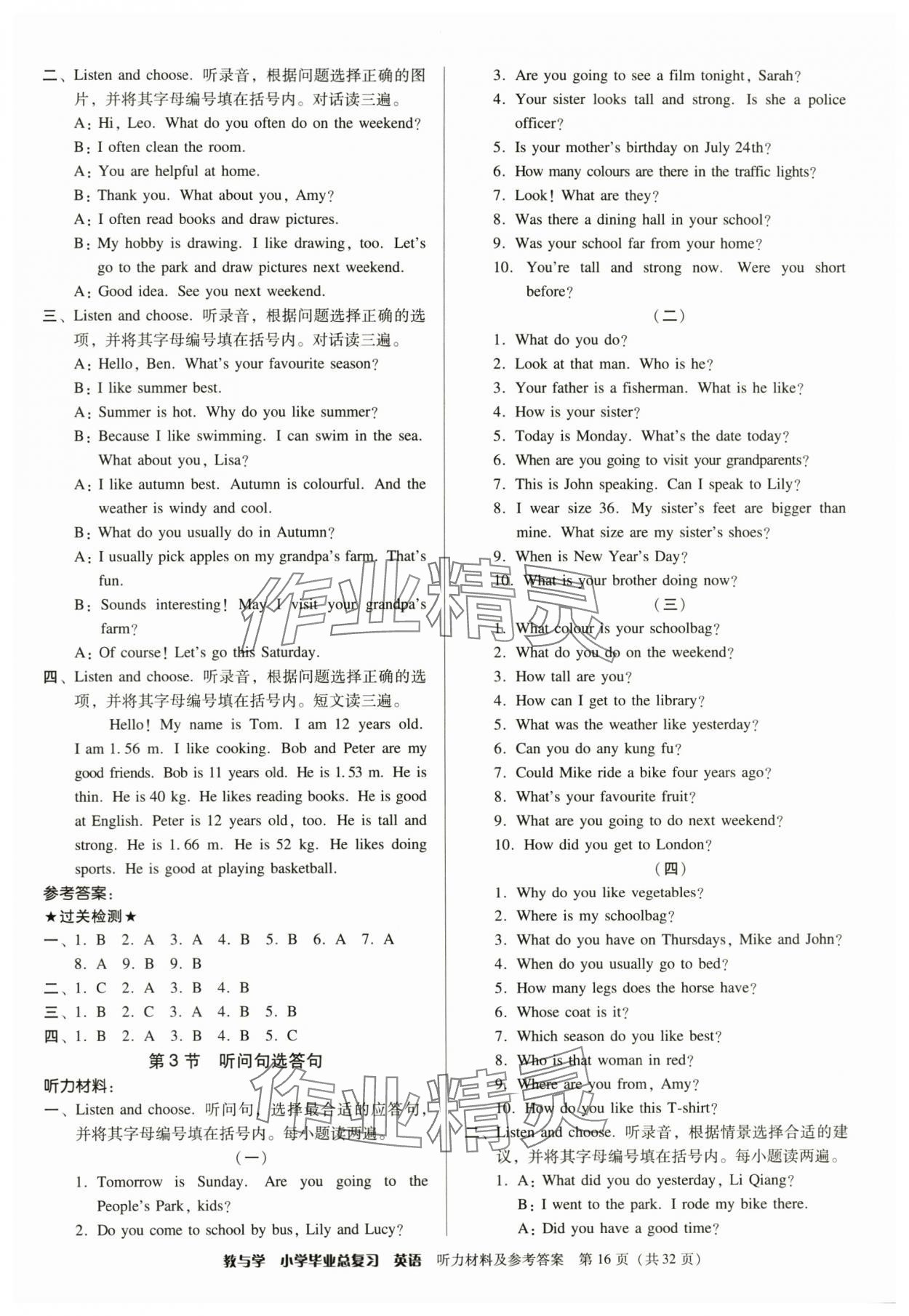 注:目前有些书本章节名称可能整理的还不是很完善,但都是按照顺序排列的,请同学们按照顺序仔细查找。练习册 2025年教与学小学毕业总复习英语 答案主要是用来给同学们做完题方便对答案用的,请勿直接抄袭。