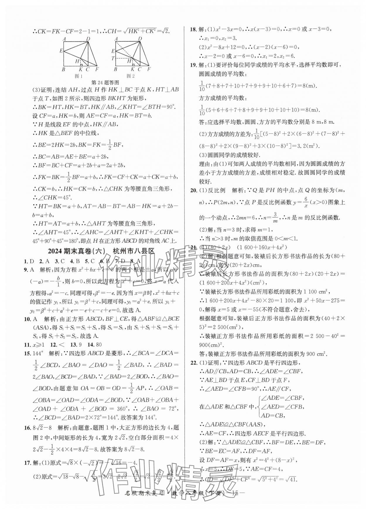 注:目前有些书本章节名称可能整理的还不是很完善,但都是按照顺序排列的,请同学们按照顺序仔细查找。练习册 2025年名校期末复习宝典八年级数学下册浙教版 答案主要是用来给同学们做完题方便对答案用的,请勿直接抄袭。