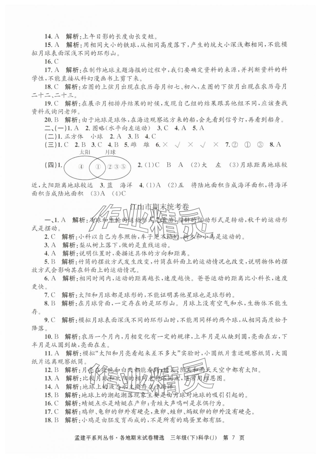 《2025年孟建平各地期末试卷精选三年级科学下册教科版》
