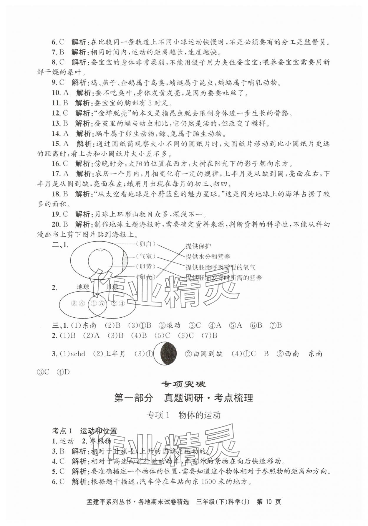 注:目前有些书本章节名称可能整理的还不是很完善,但都是按照顺序排列的,请同学们按照顺序仔细查找。练习册 2025年孟建平各地期末试卷精选三年级科学下册教科版 答案主要是用来给同学们做完题方便对答案用的,请勿直接抄袭。