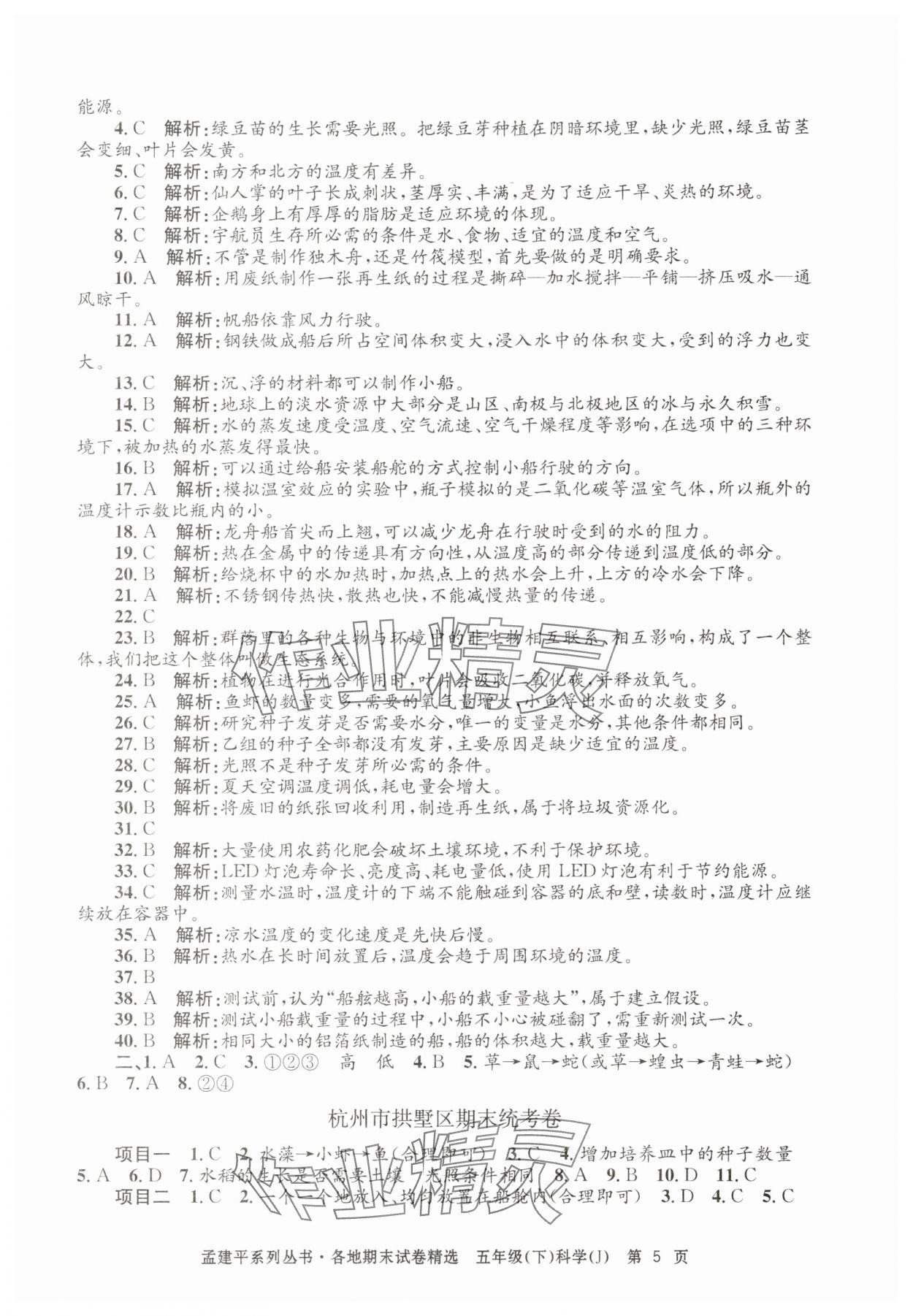 注:目前有些书本章节名称可能整理的还不是很完善,但都是按照顺序排列的,请同学们按照顺序仔细查找。练习册 2025年孟建平各地期末试卷精选五年级科学下册教科版 答案主要是用来给同学们做完题方便对答案用的,请勿直接抄袭。