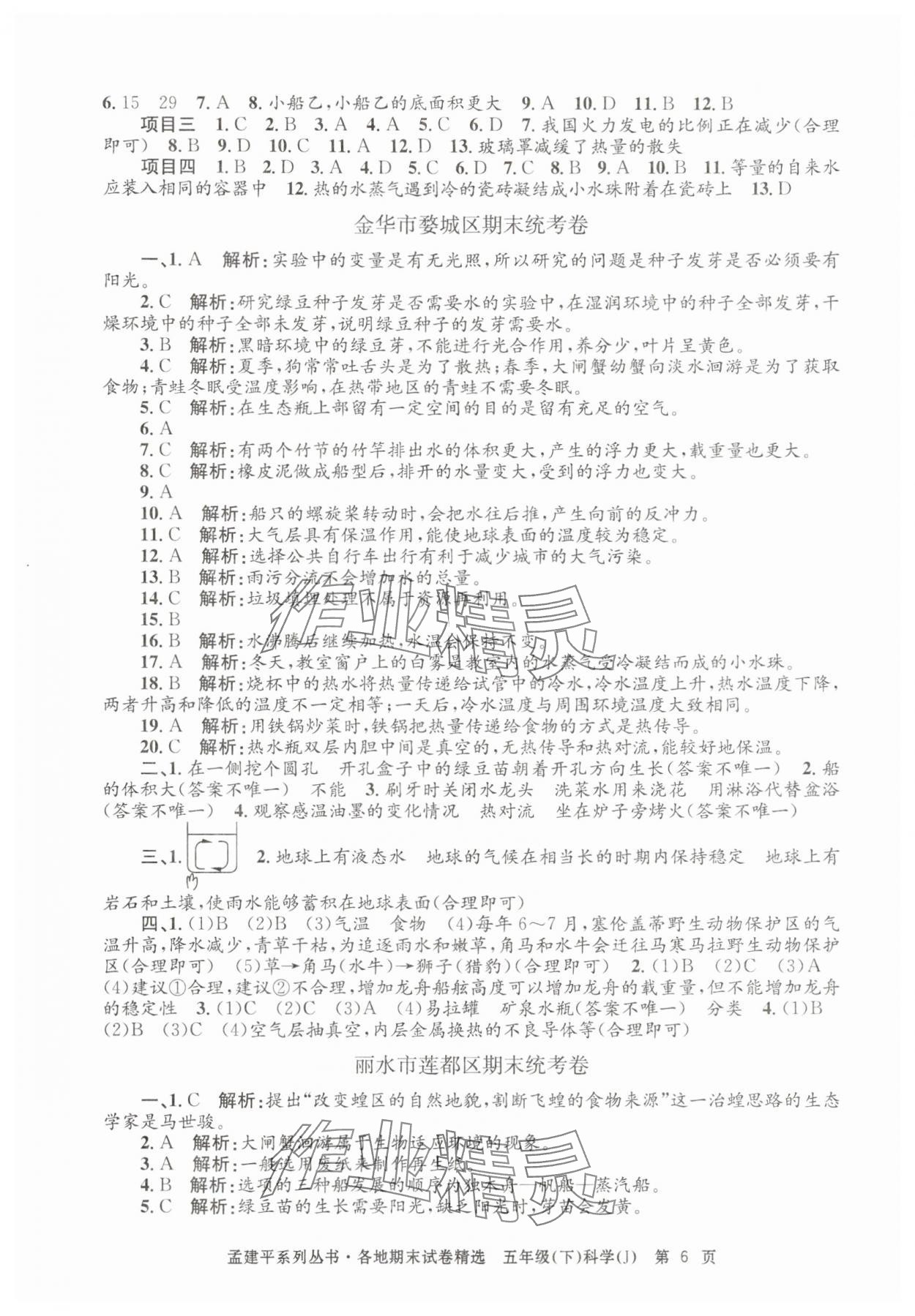 2025年孟建平各地期末试卷精选五年级科学下册教科版