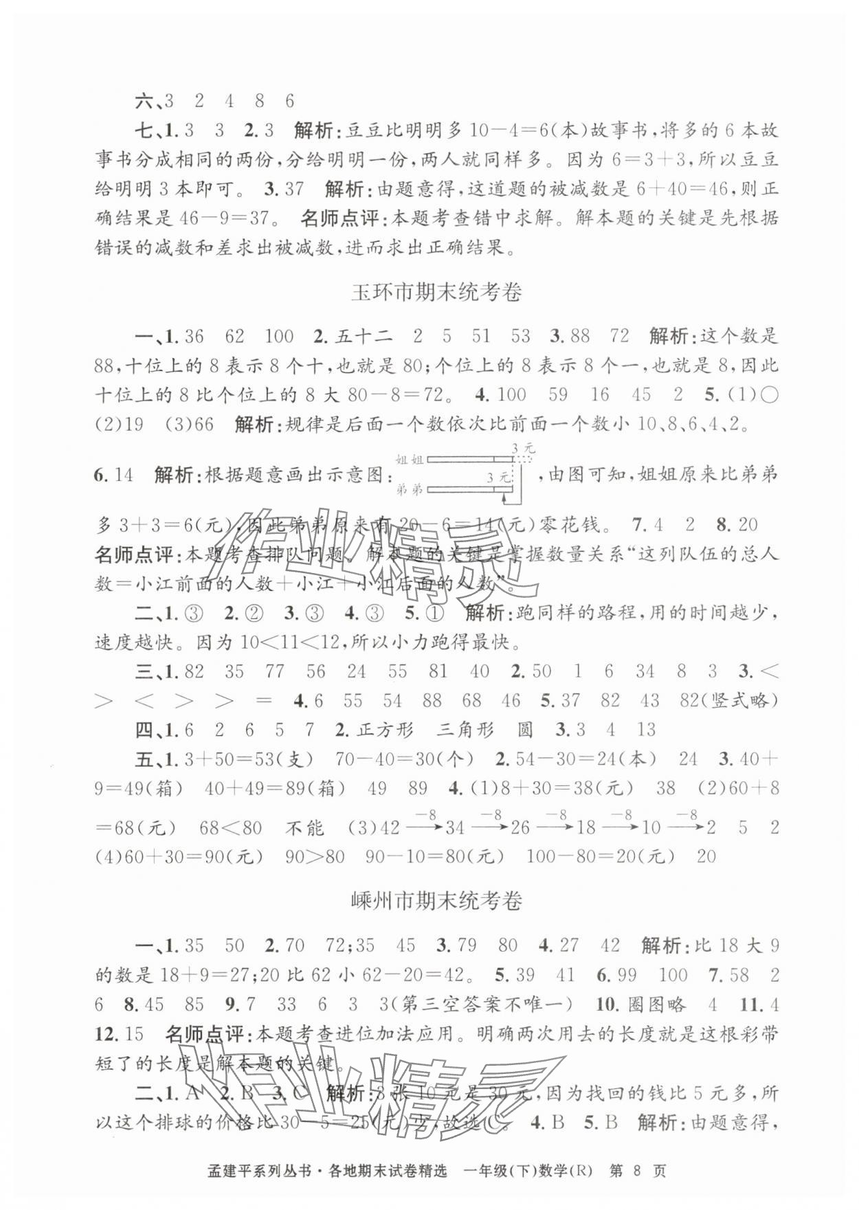 注:目前有些书本章节名称可能整理的还不是很完善,但都是按照顺序排列的,请同学们按照顺序仔细查找。练习册 2025年孟建平各地期末试卷精选一年级数学下册人教版 答案主要是用来给同学们做完题方便对答案用的,请勿直接抄袭。