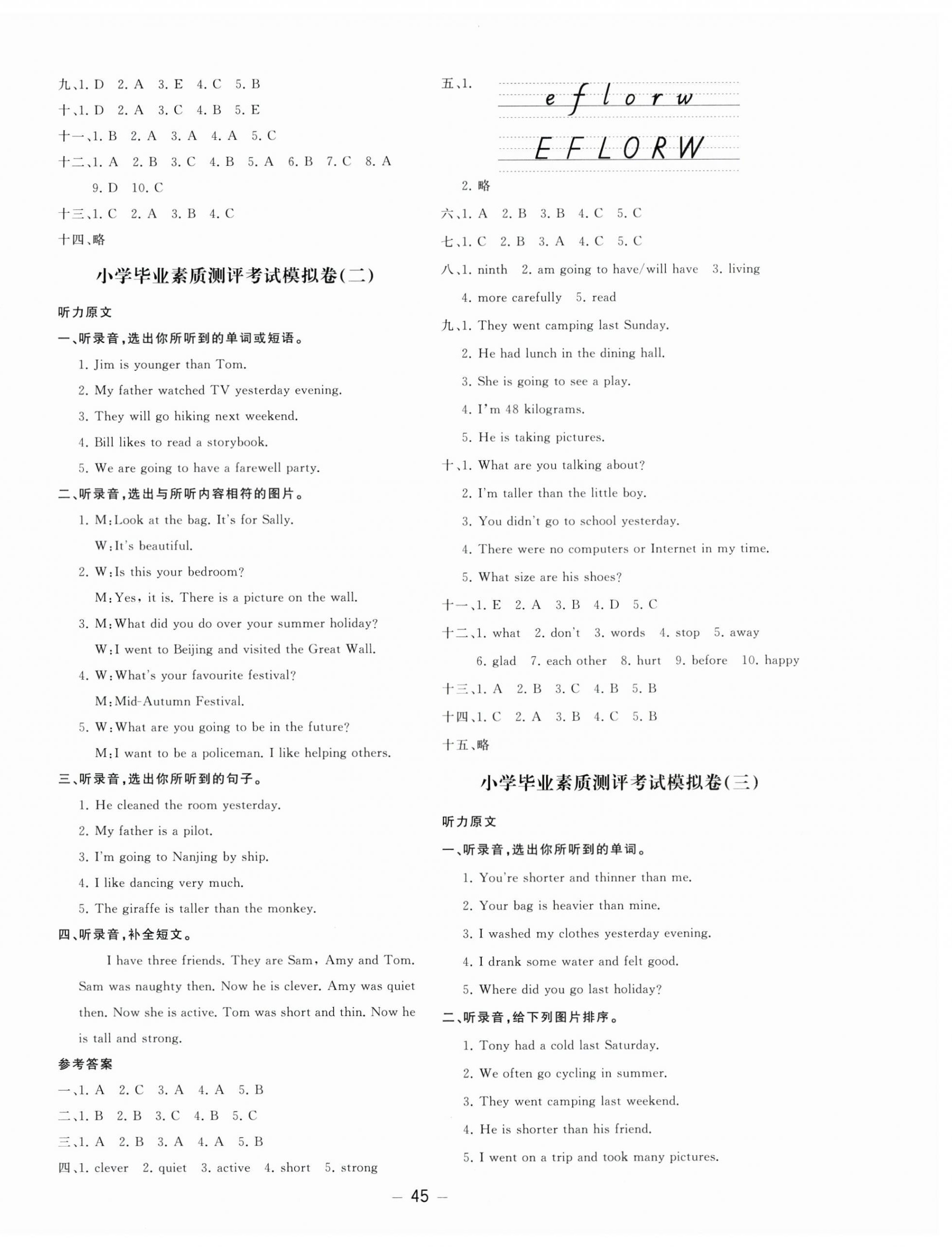 注:目前有些书本章节名称可能整理的还不是很完善,但都是按照顺序排列的,请同学们按照顺序仔细查找。练习册 2025年小升初总复习湖南教育出版社六年级英语人教版 答案主要是用来给同学们做完题方便对答案用的,请勿直接抄袭。