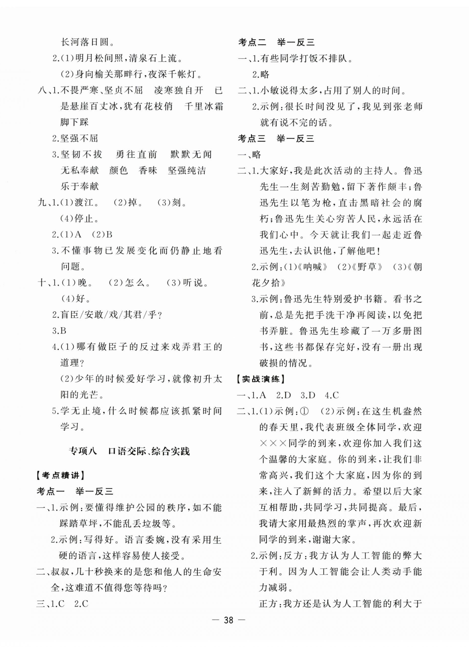 注:目前有些书本章节名称可能整理的还不是很完善,但都是按照顺序排列的,请同学们按照顺序仔细查找。练习册 2025年小升初总复习湖南教育出版社六年级语文人教版 答案主要是用来给同学们做完题方便对答案用的,请勿直接抄袭。