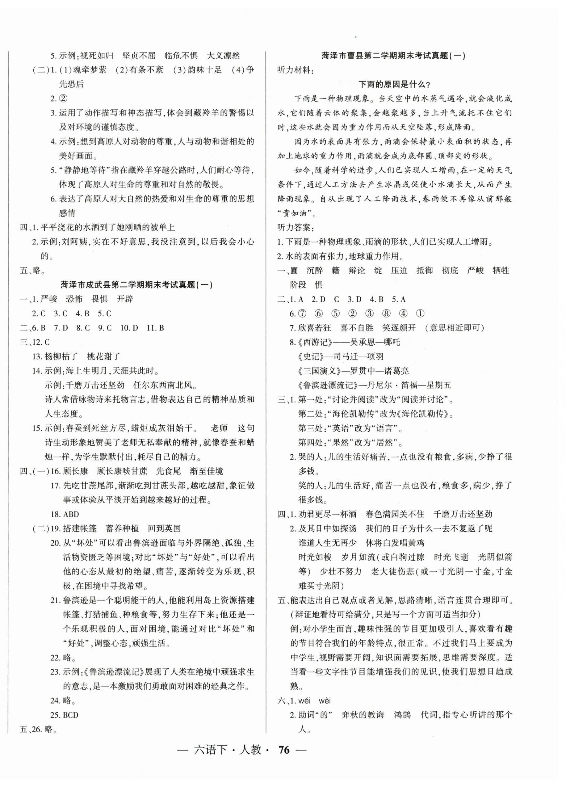注:目前有些书本章节名称可能整理的还不是很完善,但都是按照顺序排列的,请同学们按照顺序仔细查找。练习册 2025年菏泽真题汇编六年级语文下册人教版 答案主要是用来给同学们做完题方便对答案用的,请勿直接抄袭。