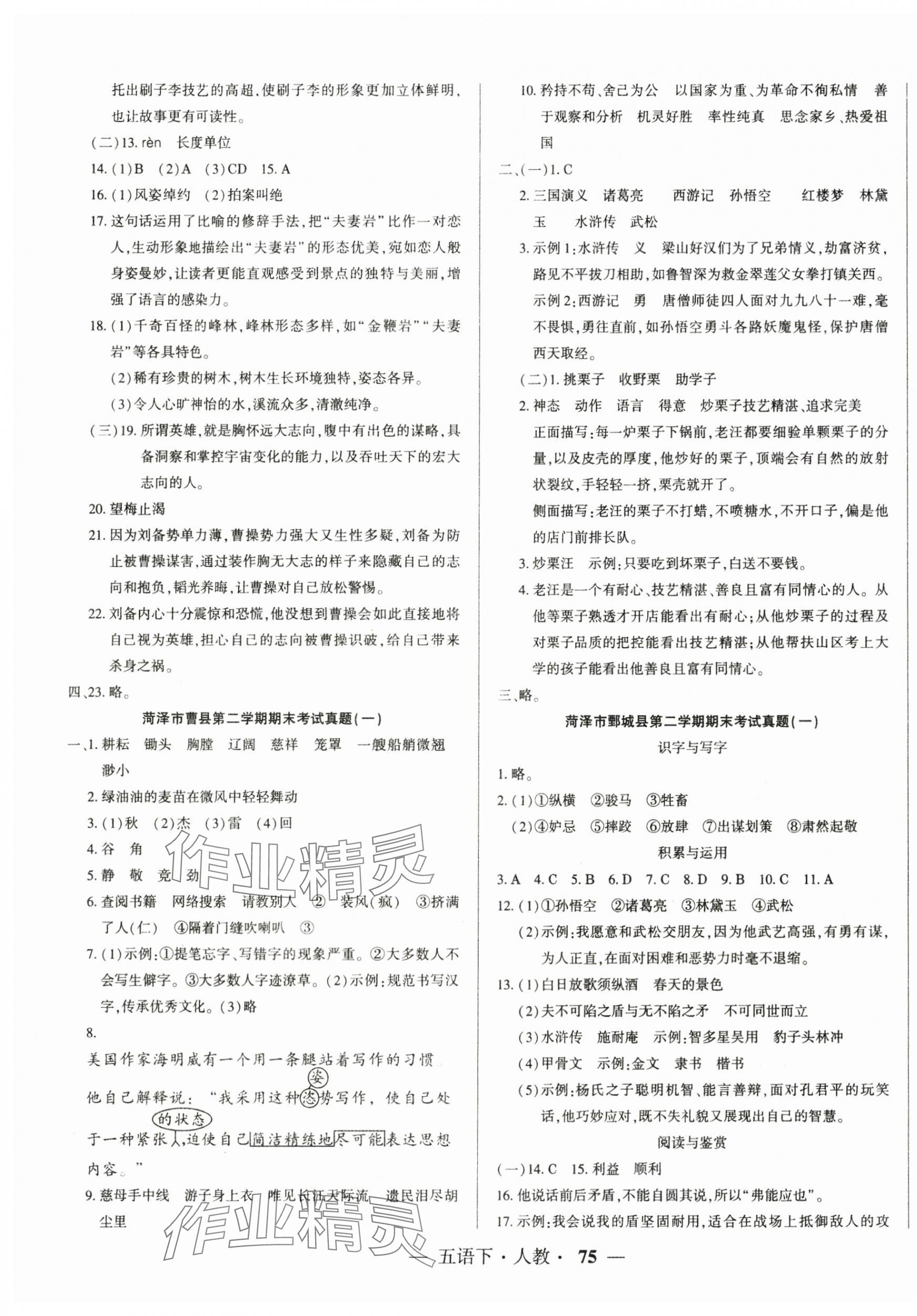 注:目前有些书本章节名称可能整理的还不是很完善,但都是按照顺序排列的,请同学们按照顺序仔细查找。练习册 2025年菏泽真题汇编五年级语文下册人教版 答案主要是用来给同学们做完题方便对答案用的,请勿直接抄袭。