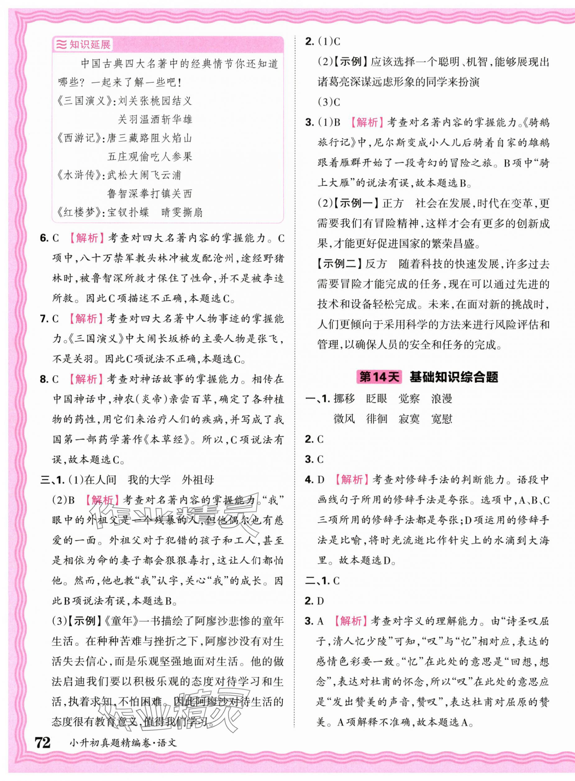 注:目前有些书本章节名称可能整理的还不是很完善,但都是按照顺序排列的,请同学们按照顺序仔细查找。练习册 2025年小升初重点校各地真题精编卷语文 答案主要是用来给同学们做完题方便对答案用的,请勿直接抄袭。