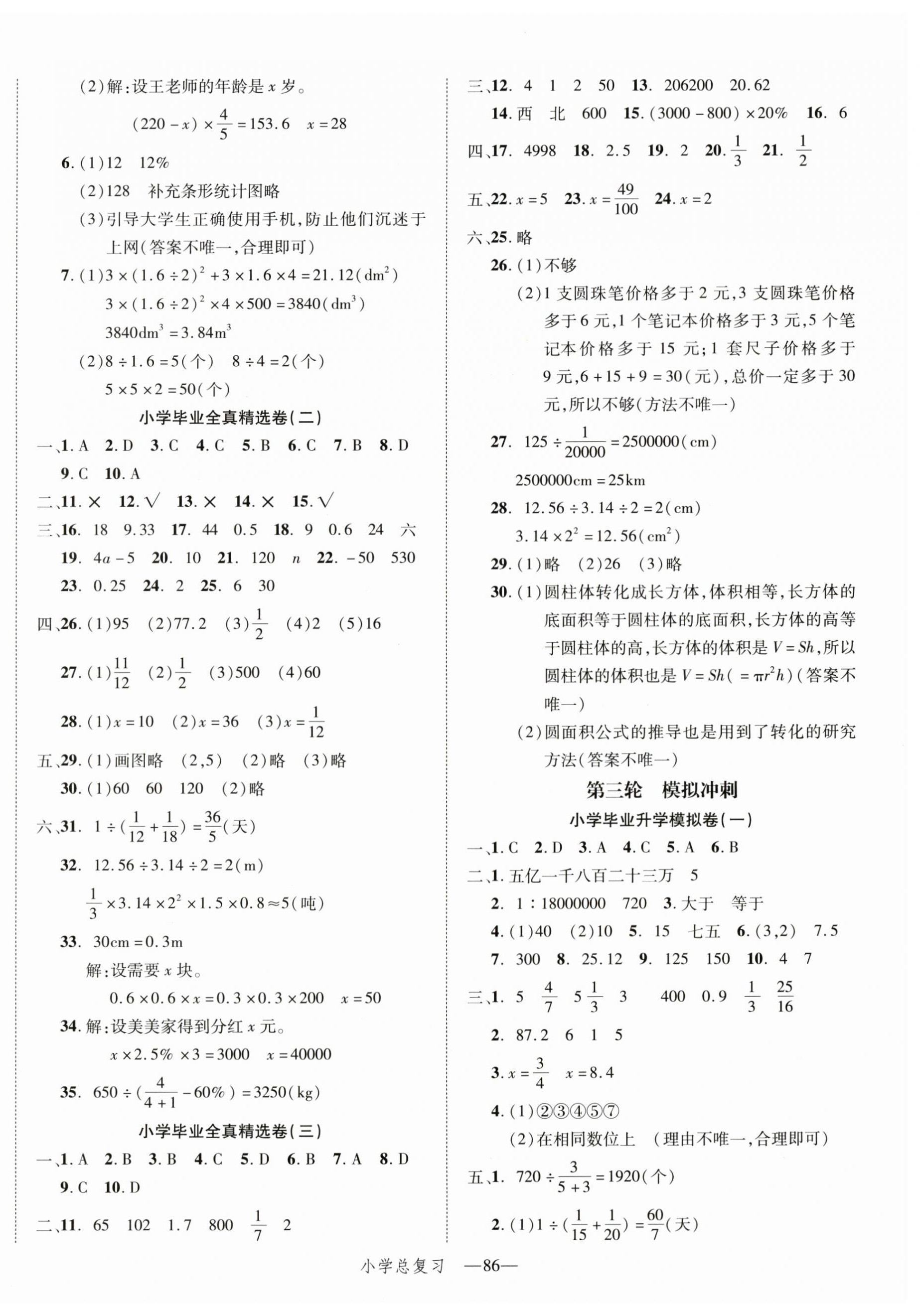 注:目前有些书本章节名称可能整理的还不是很完善,但都是按照顺序排列的,请同学们按照顺序仔细查找。练习册 2025年小学总复习冲刺卷六年级数学人教版 答案主要是用来给同学们做完题方便对答案用的,请勿直接抄袭。