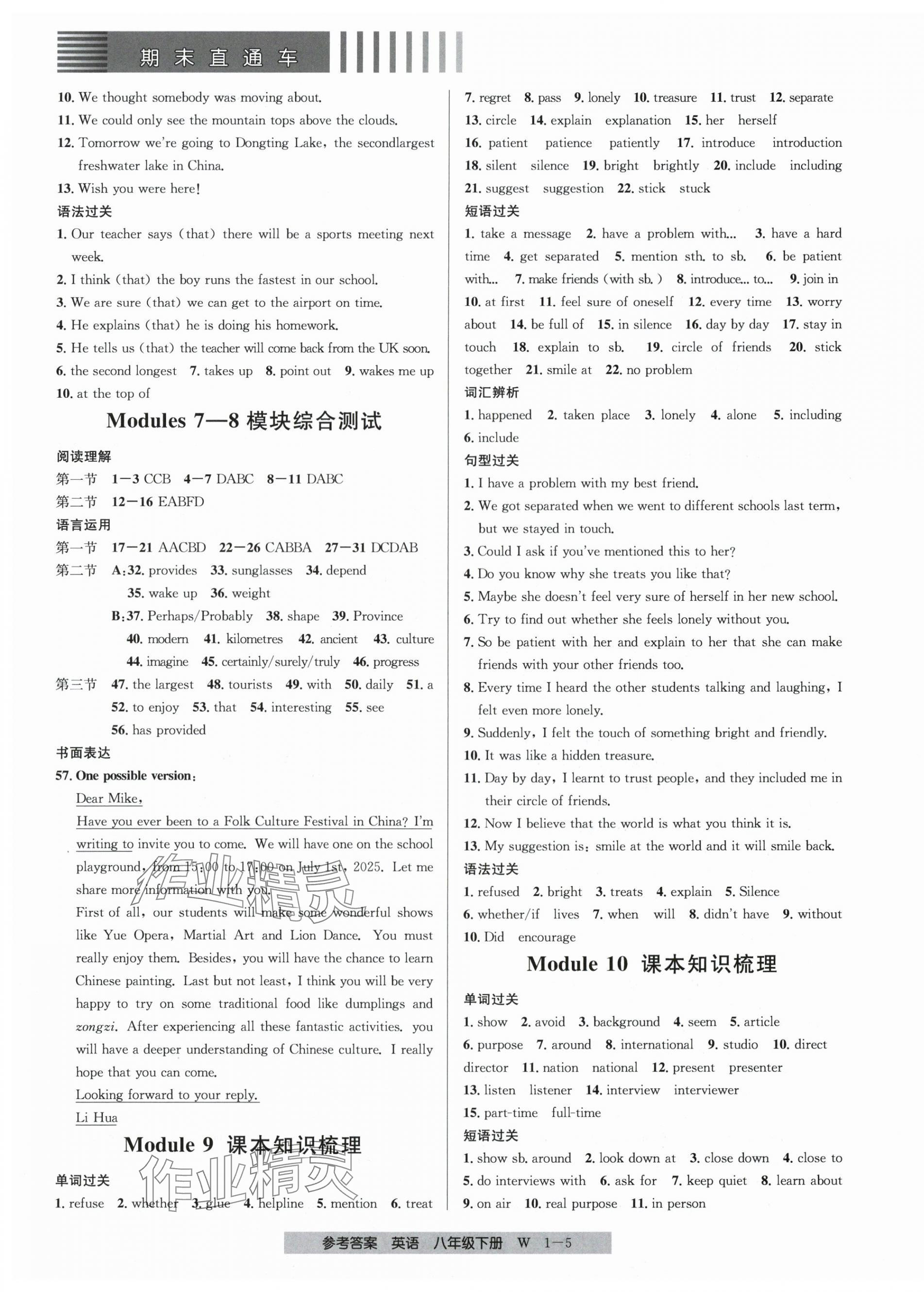 注:目前有些书本章节名称可能整理的还不是很完善,但都是按照顺序排列的,请同学们按照顺序仔细查找。练习册 2025年期末直通车八年级英语下册外研版 答案主要是用来给同学们做完题方便对答案用的,请勿直接抄袭。