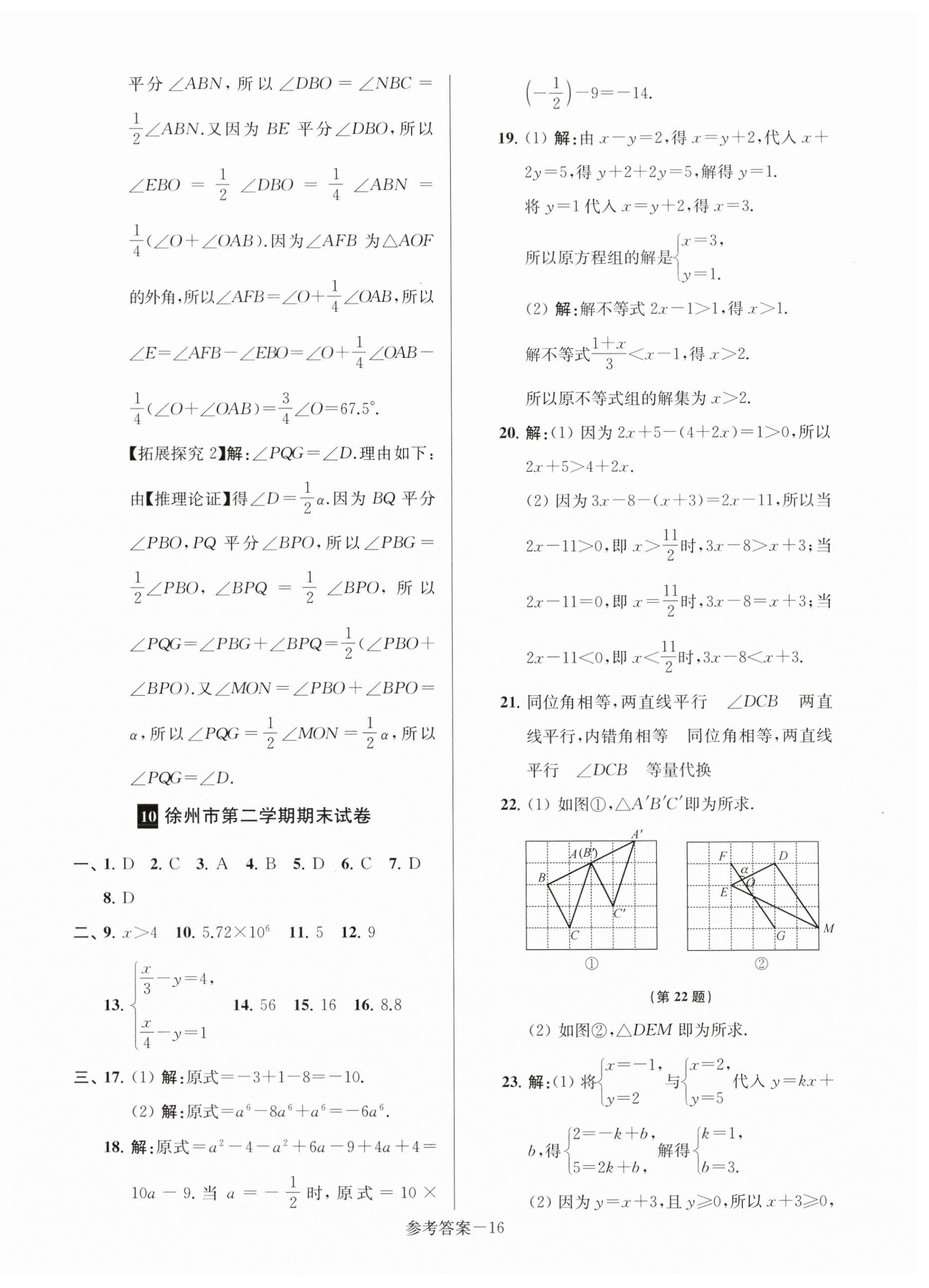 注:目前有些书本章节名称可能整理的还不是很完善,但都是按照顺序排列的,请同学们按照顺序仔细查找。练习册 2025年超能学典名牌中学期末突破一卷通七年级数学下册苏科版 答案主要是用来给同学们做完题方便对答案用的,请勿直接抄袭。
