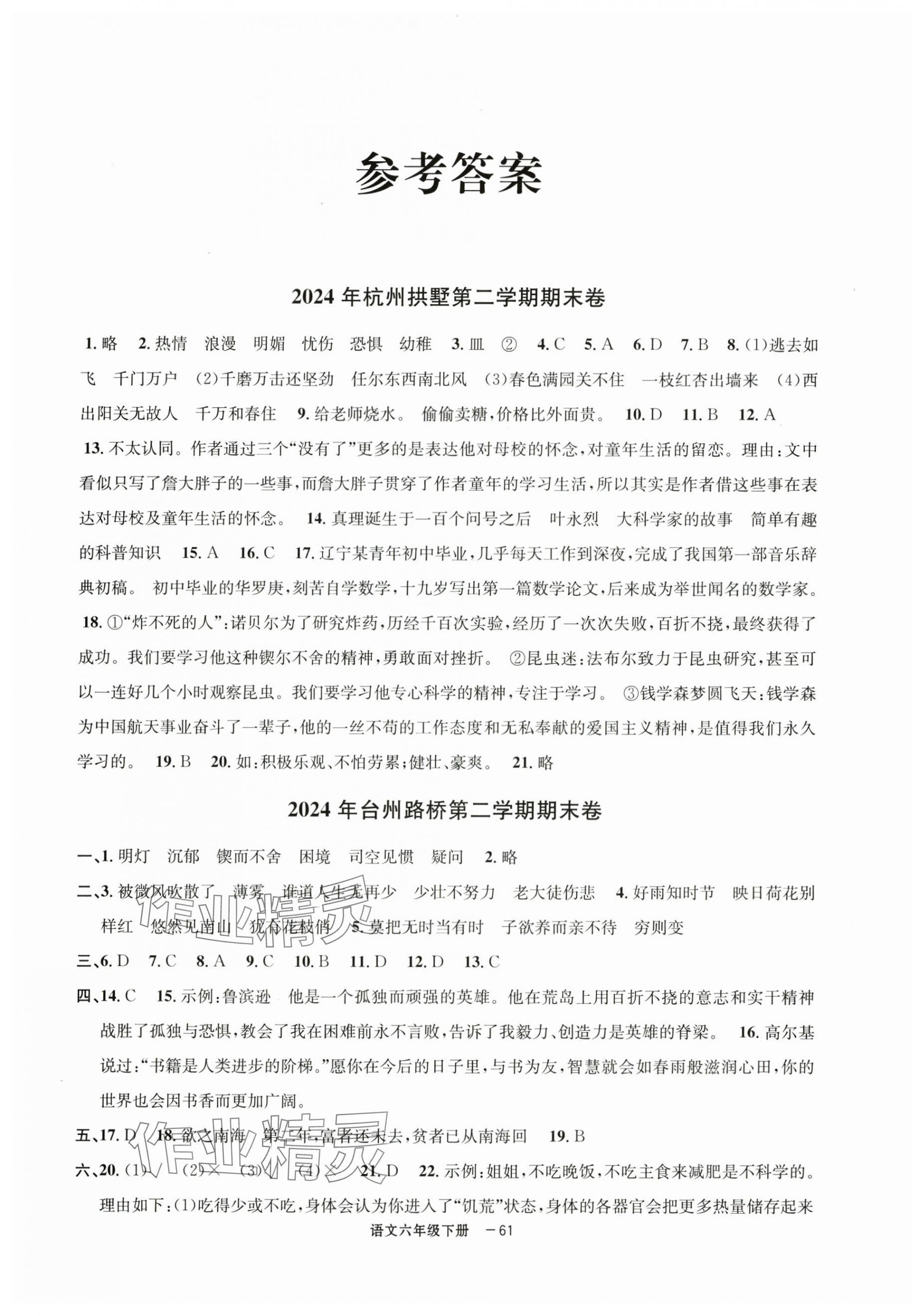 2025年浙江各地期末迎考卷六年级语文下册人教版