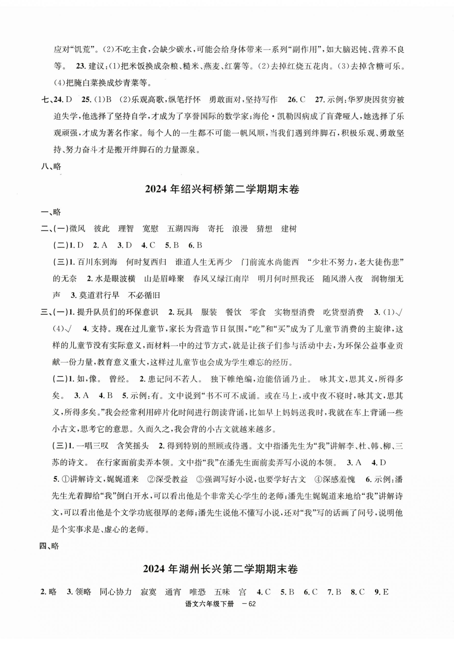 2025年浙江各地期末迎考卷六年级语文下册人教版