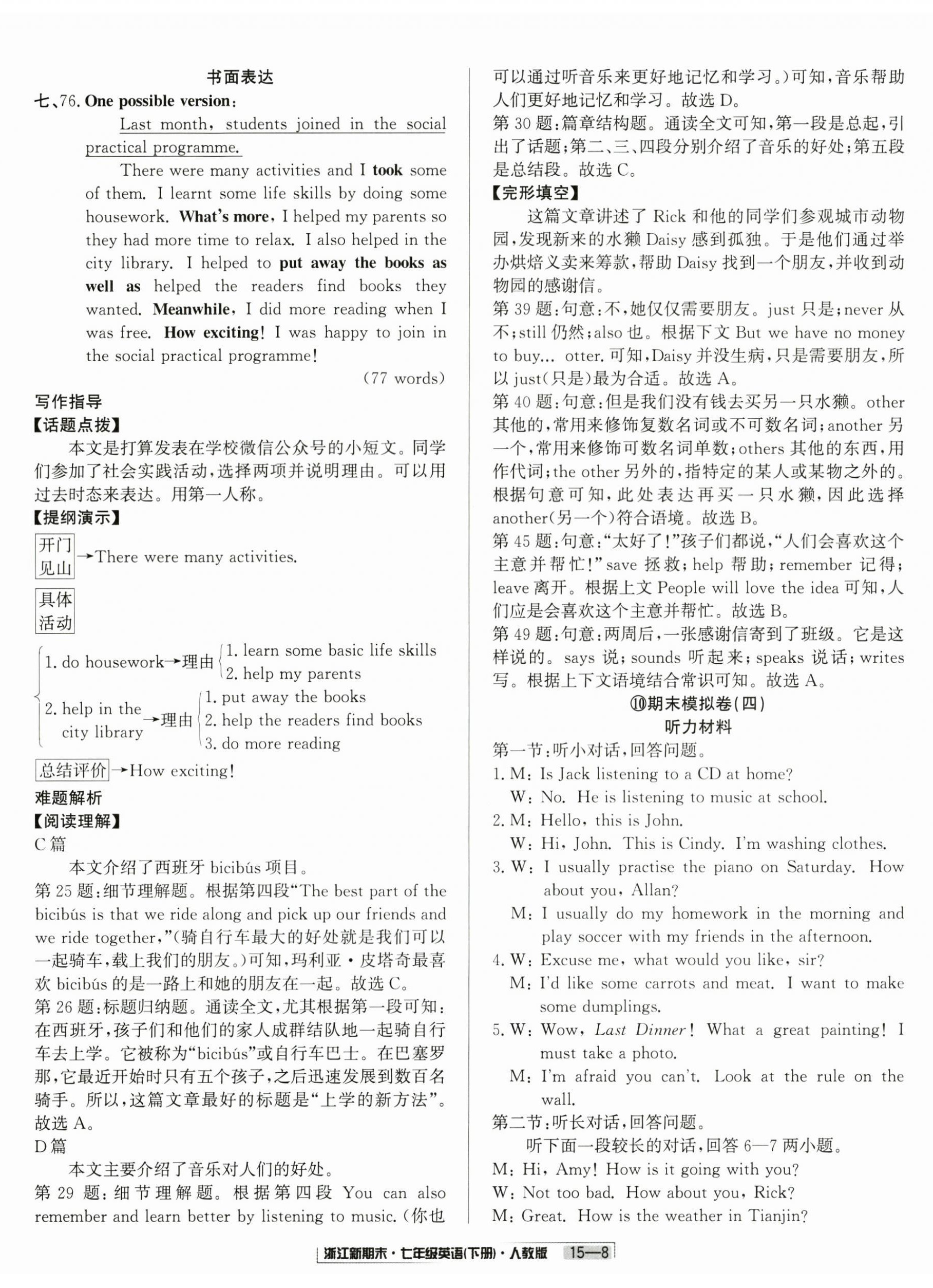 注:目前有些书本章节名称可能整理的还不是很完善,但都是按照顺序排列的,请同学们按照顺序仔细查找。练习册 2025年励耘书业浙江新期末七年级英语下册人教版 答案主要是用来给同学们做完题方便对答案用的,请勿直接抄袭。